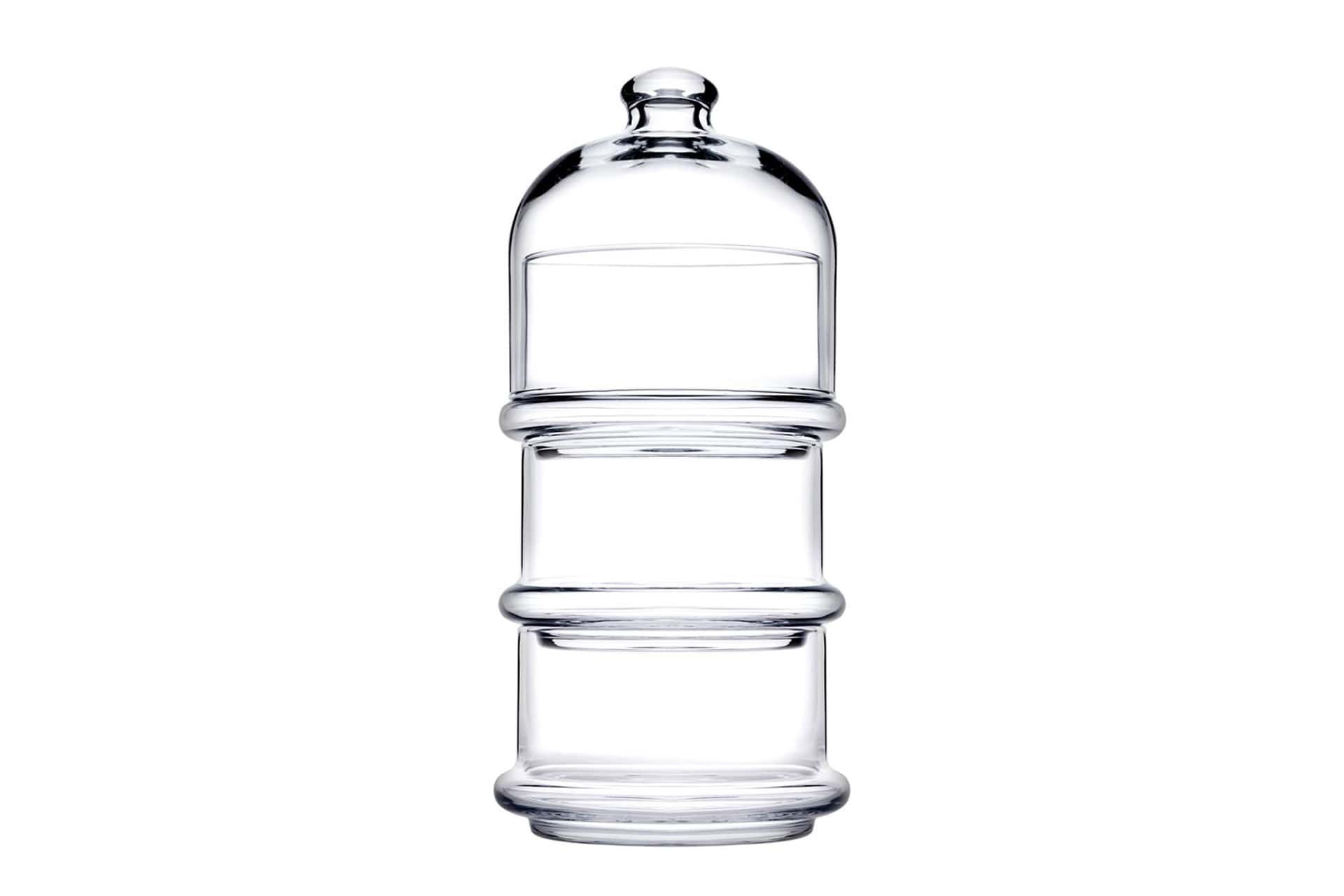 Ogni dettaglio di questa torre impilabile è pensato per offrire una presentazione impeccabile. Le coppette, perfette per servire dolci al cucchiaio, mousse, frutta fresca o antipasti raffinati, possono essere facilmente impilate e coperte con la campana in vetro, mantenendo così la freschezza e la fragranza dei cibi.