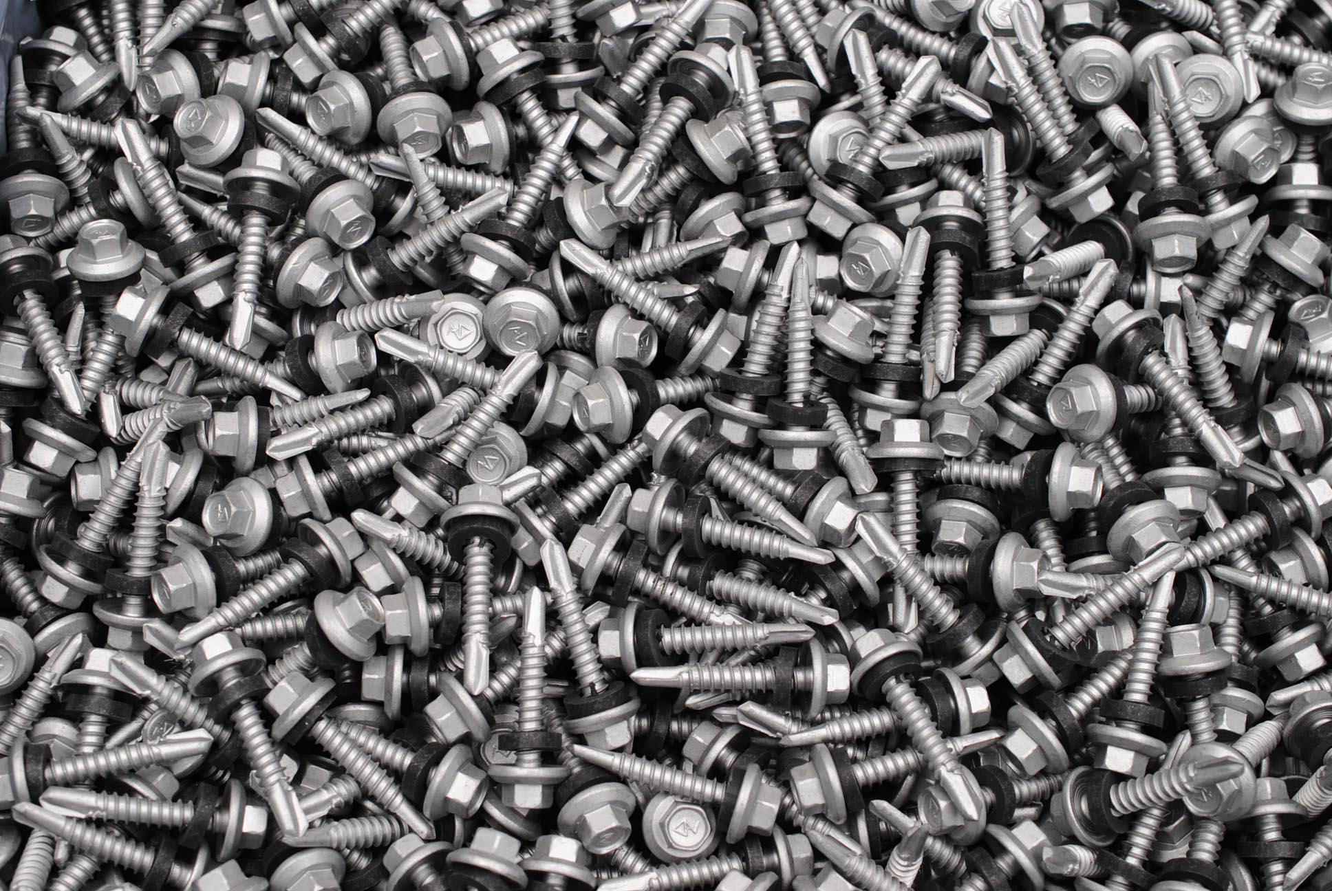 Lot of (250) indented hex flange head self-drilling screws with EPDM neoprene washer.
