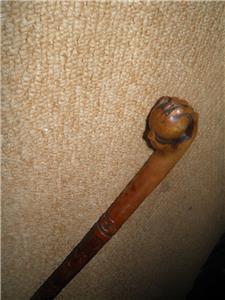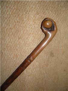 This unusual walking stick has a hand-carved clenched claw ball top In Intricate detail.