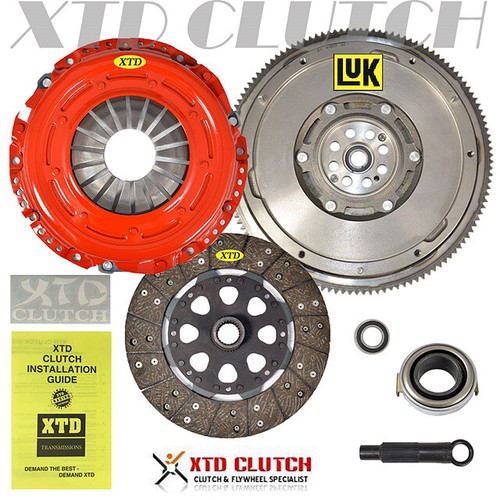You are bidding on brand new XTD Stage 2 Sports clutch kit & LuK Dual mass Flywheel fits.This Carbon Kevlar clutch is generally used with our Street Series clutches. This disc uses the same CCI heavy duty high torque internal assembly used in our most extreme Strip clutches. We then add our unique woven Carbon durability using only the best Kevlar, spring center designs.This XTD Stage 2 clutch kit hold More HP and Torque Than Stock Pressure Plate and This Pressure plate is made from Kevlar, steel back frictions for maximum added burst strength and thermal dissipation. This is the ultimate Street clutch. This XTD Stage 2 Clutch Kit Includes XTD Heavy-duty Pressure plate,XTD Carbon Kevlar Steel-back Street Disc,Throw out bearing,Pilot Bearing, Alignment Tool,Luk dual mass Flywheel,Clutch installation and XTD clutch Logo Winshield decal.This XTD Pressure plate Holds 25% more ductile iron and heat Treated Which is about 20% Stronger Than Just Stock Cast Iron Pressure plate. XTD Stage 2 clutch is Designed for Smooth Engagement,quiet operation and good for Just Stock and Mildly Modified application.All XTD Sports clutch kit Designed for Street (Daily driving) so It won't make you difficulty on daily normal driving.All XTD Racing Clutch Kit Required 500Miles Break-in Period. About LuK Flywheel: LUK is one of the largest OE flywheel manufacturer in the world and currently supplies original equipment parts to AUDI/VW, BMW, INFINITI/NISSAN and PORSCHE. The dual-mass flywheels absorb engine vibrations before they are transmitted to the driveline where they can create gear rattle. The unit is split into two sections: a primary section that bolts to the crankshaft, and a secondary section, onto which the clutch is bolted. The primary section dampens, isolates engine vibrations and prevents engine torque spikes from damaging the transmission. By design, dual-mass flywheels cannot be resurfaced. This is a direct factory replacement flywheel thus no modification is required Engineered and manufactured to OE specificationsAll new components - including ring gear and dowel pinsPerfectly balancedPrecision-machined from premium grade cast ironSuperior quality friction surfaceExcellent heat-absorbing capacity