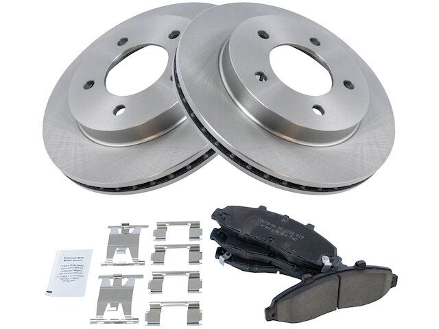 Package Contents: (1) Front Ceramic Brake Pad Set; (2) Front Replacement Brake Rotors; Brake Pad Contact Point Grease; Brake Pad Hardware