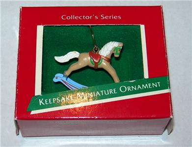 WHAT YOU ARE BIDDING ON IS A REAL NICE HALLMARK 1989 MINIATURE ROCKING HORSE ORNAMENT "BRAND NEW" THIS ORNAMENT IS BRAND NEW. COMES FROM A SMOKE- FREE HOME.
