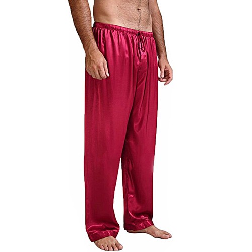 Men's Satin Silk Pajamas Sleepwear Pyjamas Long Pants Sleep Bottoms Red/Black UK