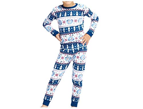 Your little one will be comfy and cozy with Olaf in this fun winter-themed pajama set. Features a fair isle print with an Olaf and snowflakes theme. Rib-knit trim in dark royal blue. Coordinating print pajama pants with an elasticized waistband for a custom fit. Of a soft and cozy cotton fabric, to be worn snug-fitting.