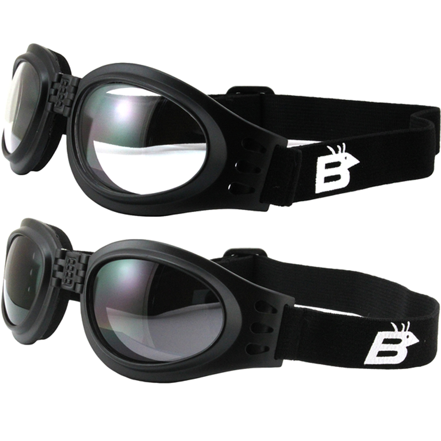 Protect your eyes and keep your adventures safe when you strap on a pair of our aerodynamic, close-fitting, high-performing Birdz Eyewear Parrot Motorcycle Riding Goggles. Durable neoprene foam padding not only shields your eyes from dust and debris, but is specially designed to withstand all kinds of wear and tear the elements can throw at it without deteriorating the way some foam padding does. Anti-fog coating keeps your vision crystal clear in all conditions while indirect side ventilation further impedes fog flare ups. The venting and padding also ensure comfort, even on long trips. Additional features include high-quality shatterproof polycarbonate lenses with UV400 filters to protect your eyes from the harmful effects of the sun as well as a comfortable, adjustable elastic strap for a secure, no-slip fit. Lenses are available in clear, smoke, purple, and yellow tint. Glasses come complete with a free microfiber pouch for cleaning and safe storage. This pair features clear and smoke lenses.