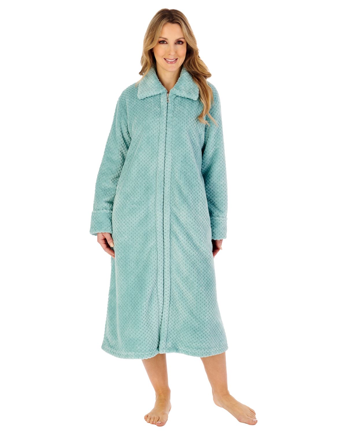 Slenderella Luxury Waffle Fleece 46" Long Sleeve Zip Through Dressing Gown
