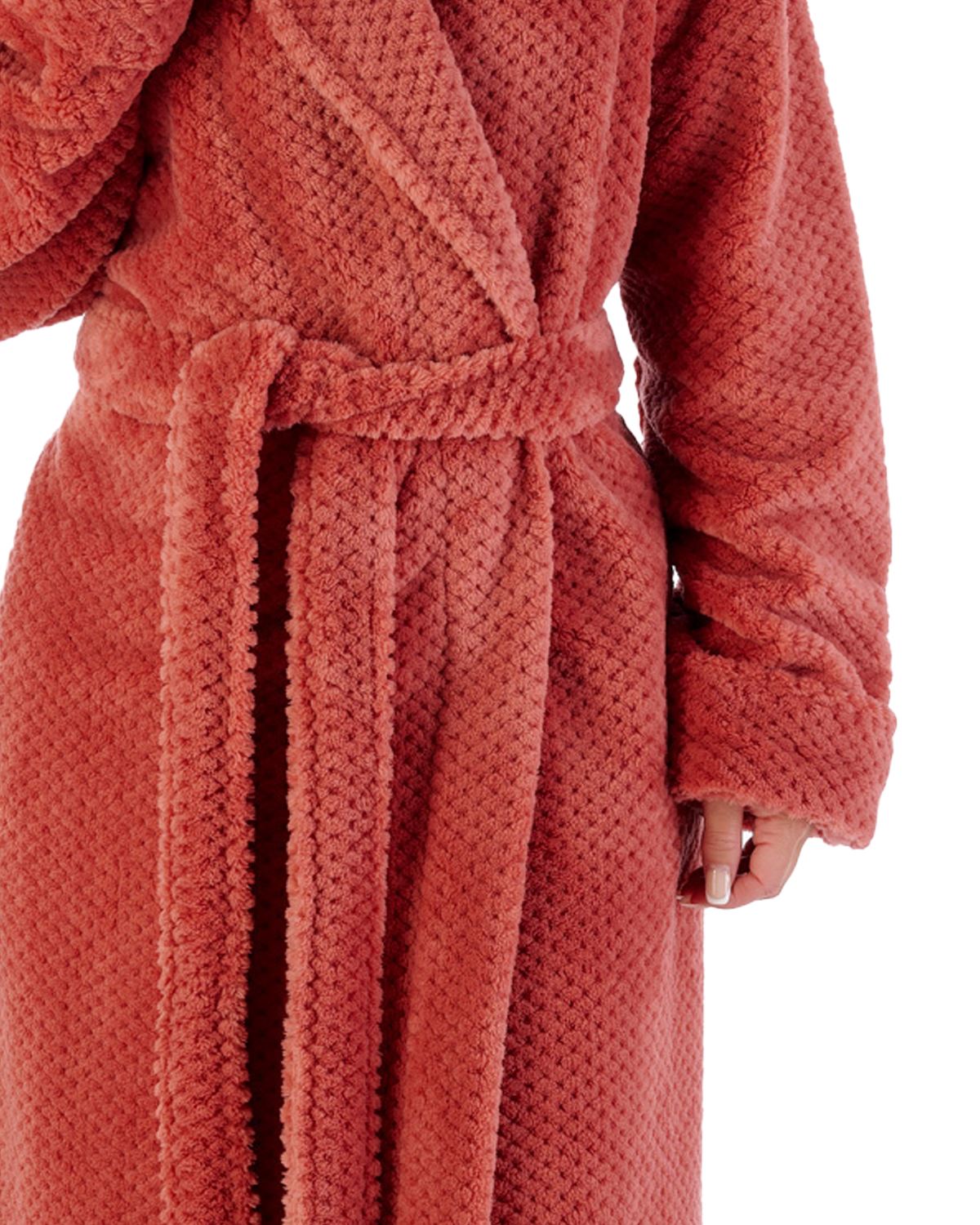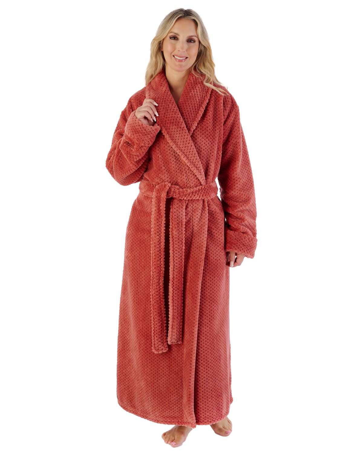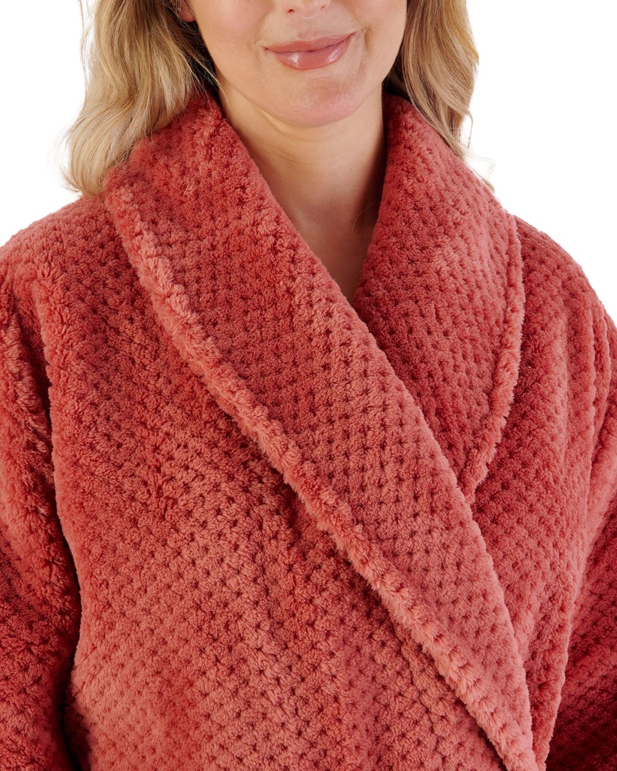 Slenderella Luxury Waffle Robe Soft Coral Fleece Shawl Collar Wrap Dressing Gown