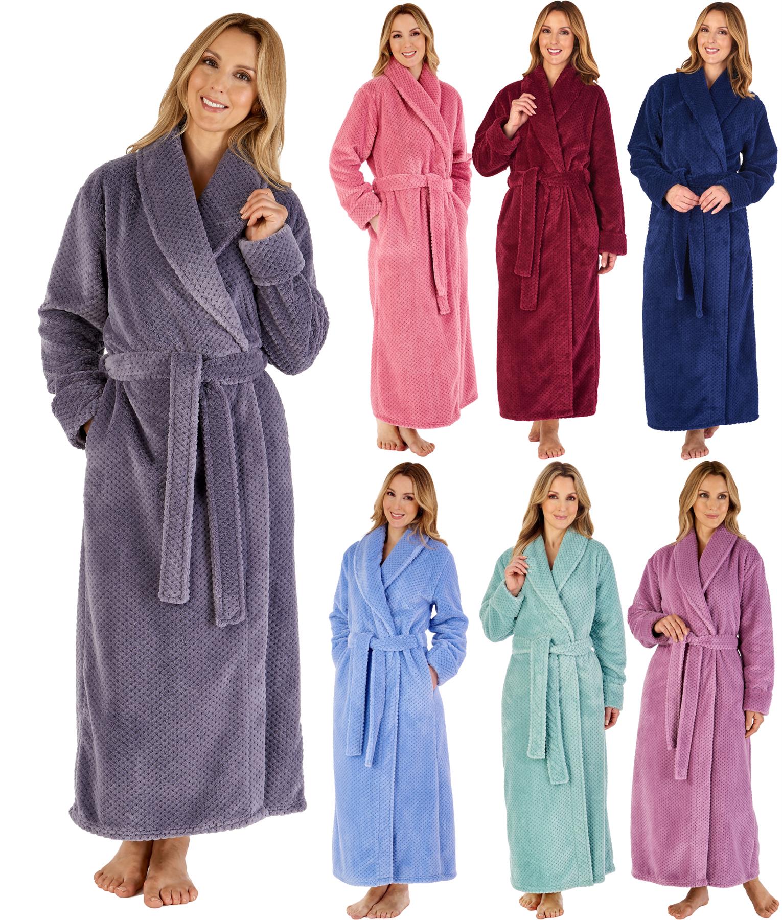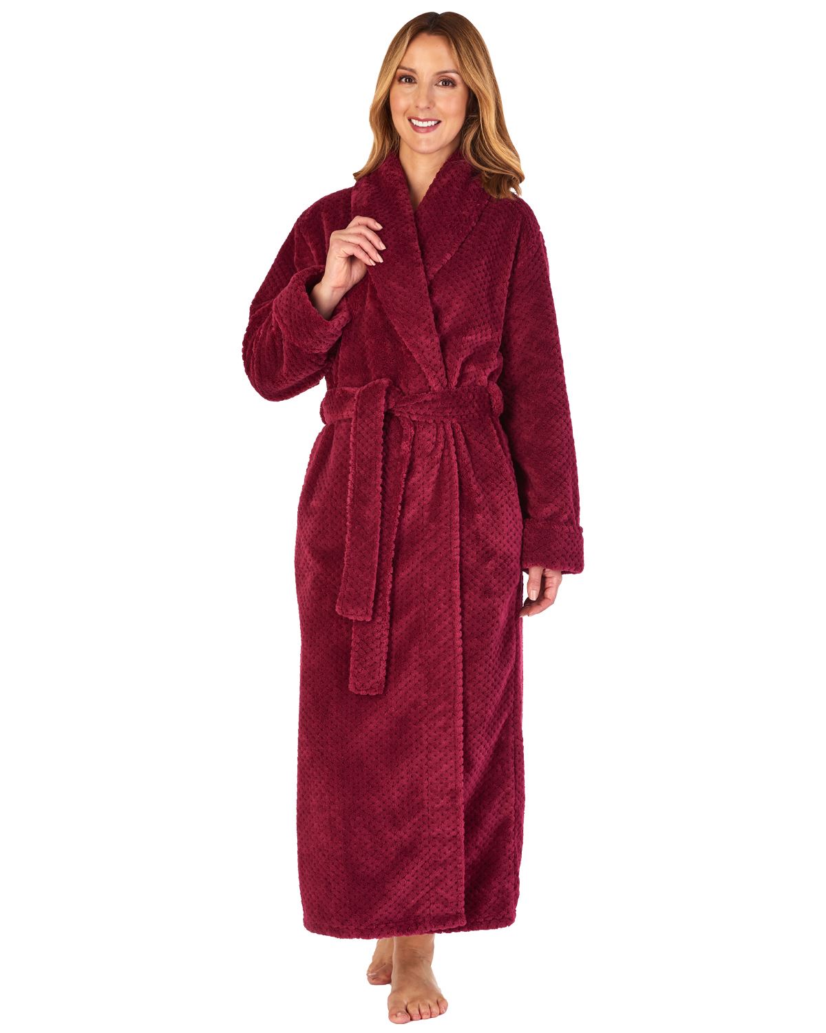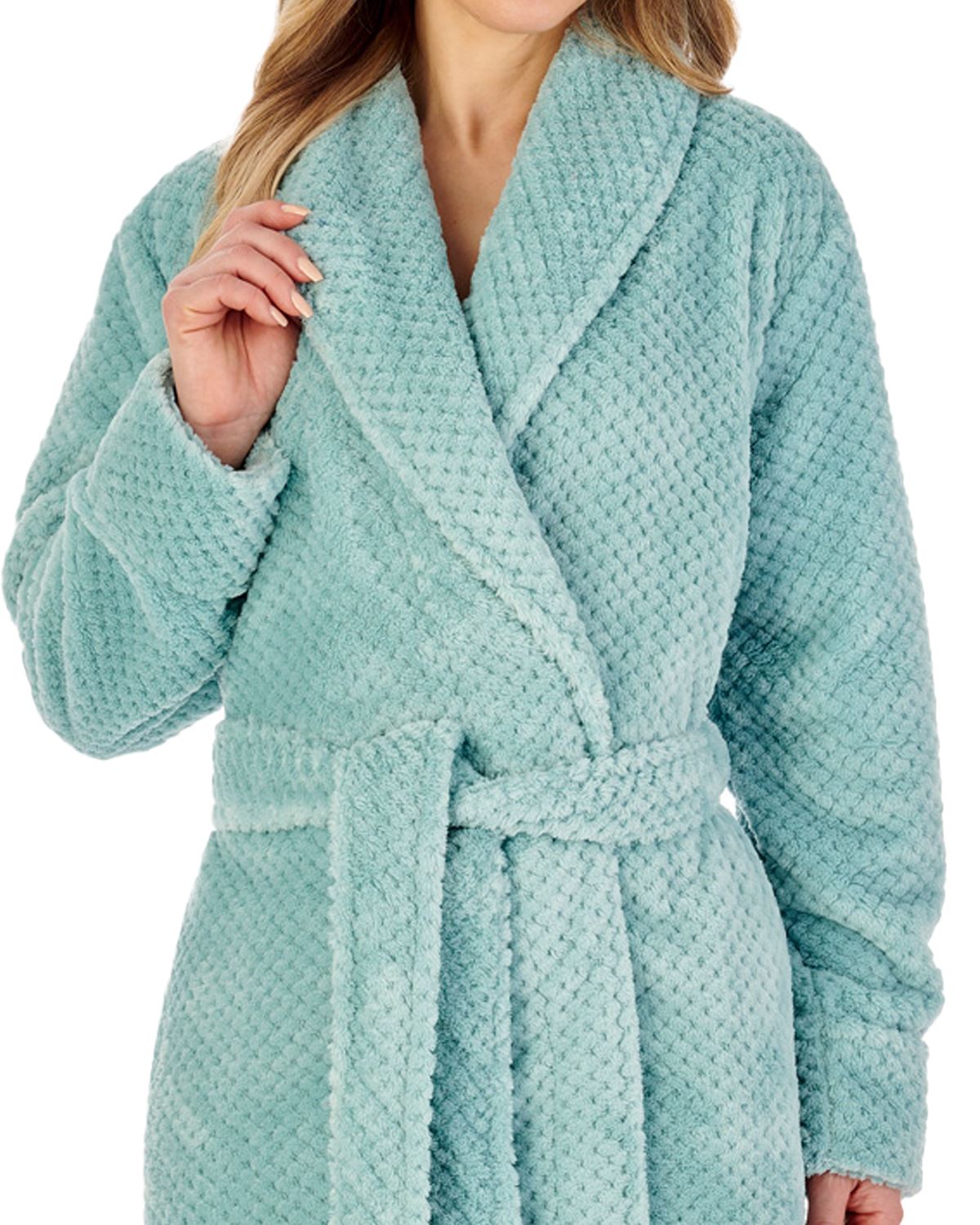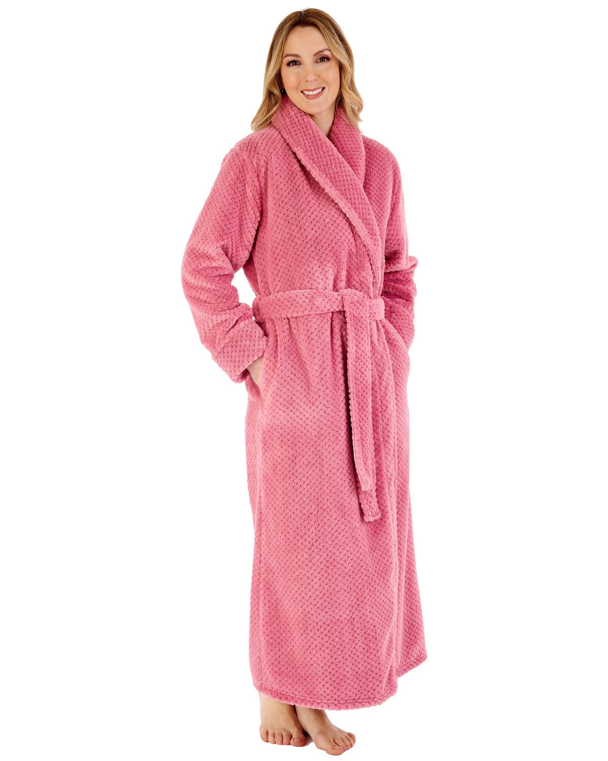 Slenderella Luxury Waffle Robe Soft Coral Fleece Shawl Collar Wrap Dressing Gown