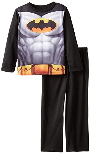 Your guy or gal's favorite superhero in a comfy polyester pajama set. Features a cool Batman costume style graphic on the pajama top. Elasticized waistband on the black pajama pants. A detachable cape included, Of a cozy, 100% polyester.