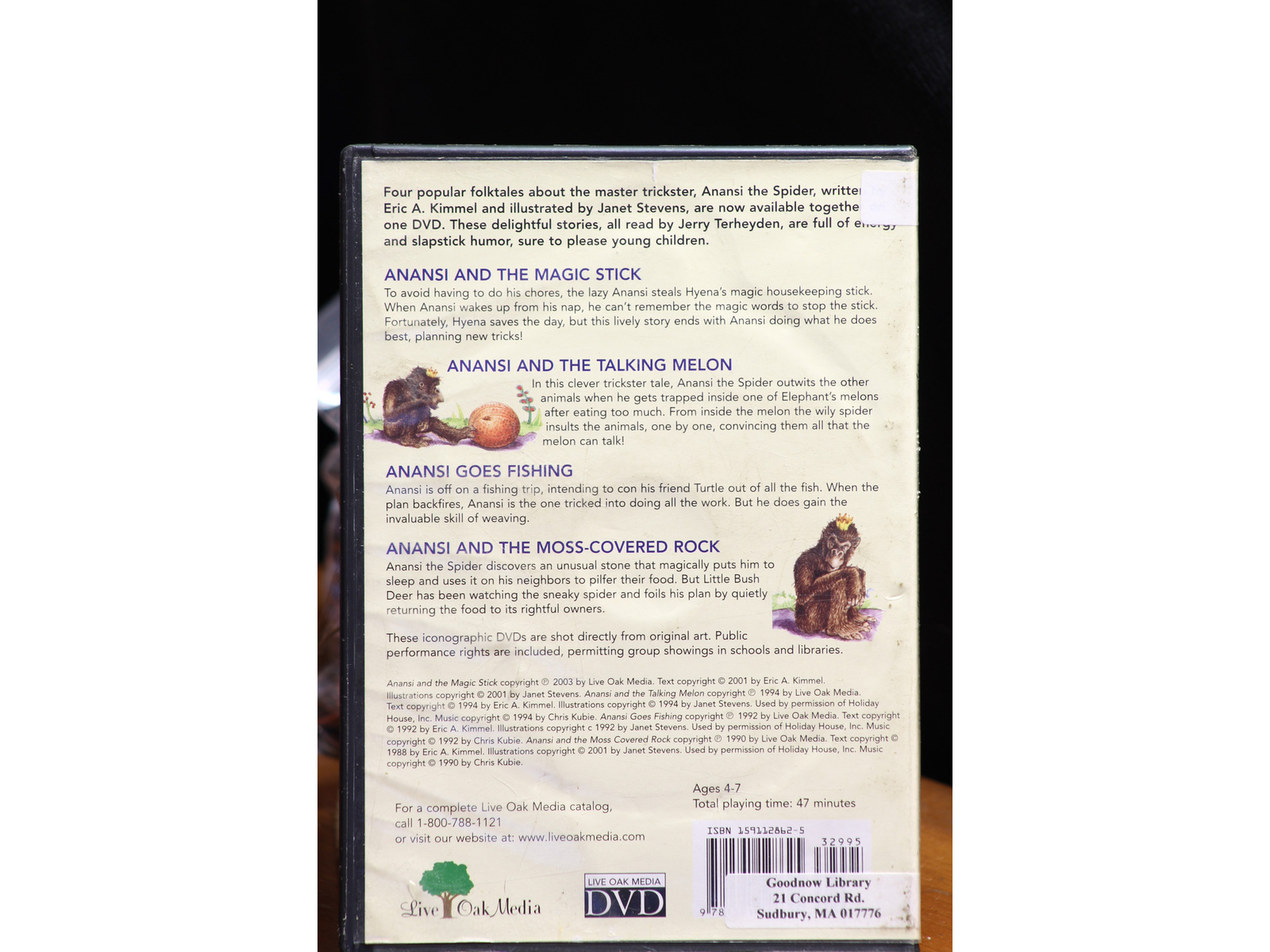 Title: The Anansi Collection Eric A. Kimmel Magic Stick, Talking Melon DVD:7200 Format: DVD ReleaseDate: RunningTime: Actor: Barcode(UPC): Genre: Plot: