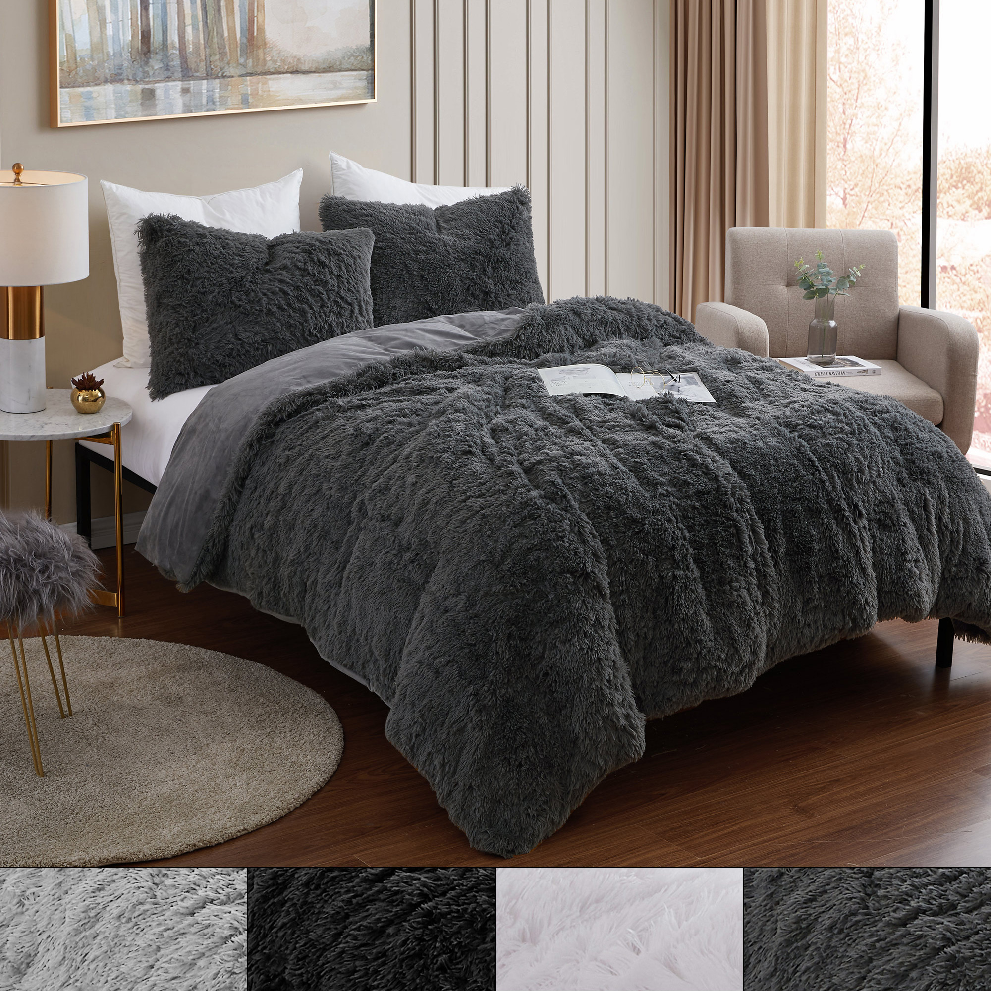 Bring style, comfort and warmth to your bed with the Sweet Home Collection 3 piece Shaggy Plush Comforter and Sham Set. Featuring a plush Shaggy Faux Fur, with Soft Polyester Microfiber on the reverse side, the sumptuously soft bedding provides warmth all year round. Comes with two matching Shams to put your favorite pillows in. Machine washable for easy care. This luxurious set is available in Queen and King