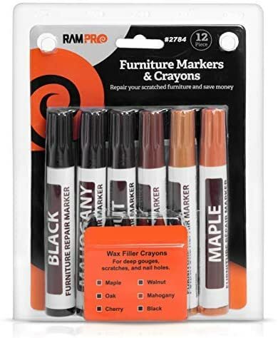 Ram-Pro Furniture Markers Touch Up Repair System - 12Pc Scratch Restore Kit - 6