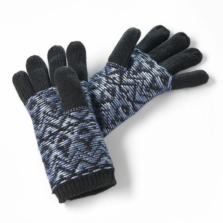 Women's One Size Simply Vera Wang Mixed Woven Fold-Up Ribbed Metallic Gloves. These women's Simply Vera Vera Wang gloves feature woven details and ribbed accents. In black. Woven design, Fold-up ribbed accents, Acrylic, One size fits most.