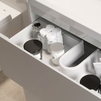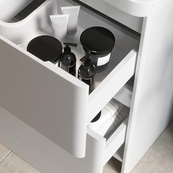 Ample storage spaceTwo large drawers give you more than enough space to store all your bathroom essentials. You don't even lose out on space to the basin waste thanks to the shroud inside the top drawer. ![]() |