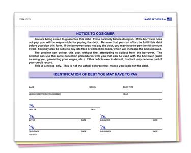 Protect yourself by ensuring that co-signer is aware of the seriousness of their obligation to pay in the event of the vehicle buyer defaults on payments.