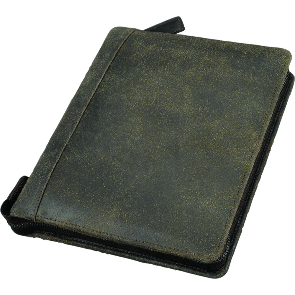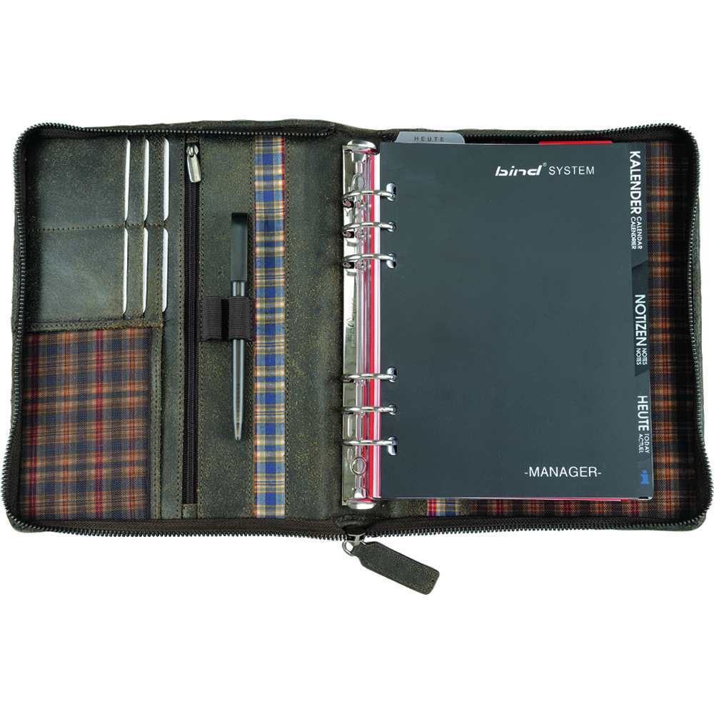 Hochwertiger Systemplaner A5 aus Split-Washed-Leder mit umlaufendem Reißverschluss in Braun.
