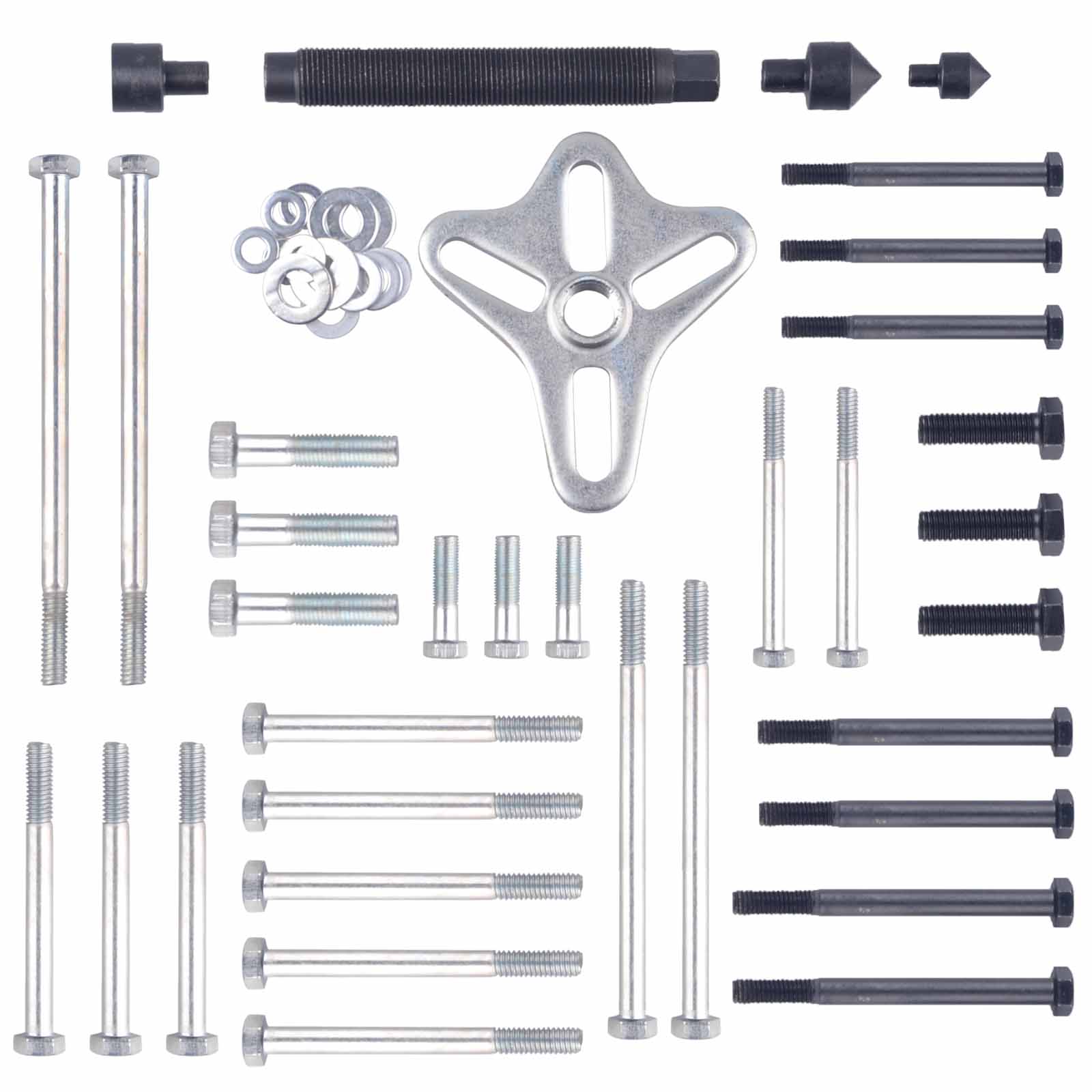 Puller Set comes with everything needed to pull many harmonic balancers off an engine (but NOT ALL engines). Included in the kit are many different sized bolts and washers to suit a variety of balancers. Supplied in a protective carry case.