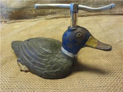 Up for your consideration is an extremely rare vintage cast-iron lawn sprinkler in the shape of a duck. It has not been tested for leakage. It still has most of the original paint. It is extremely heavy. This piece has a lot of character, very primitive! The detail in the feathers is superb!