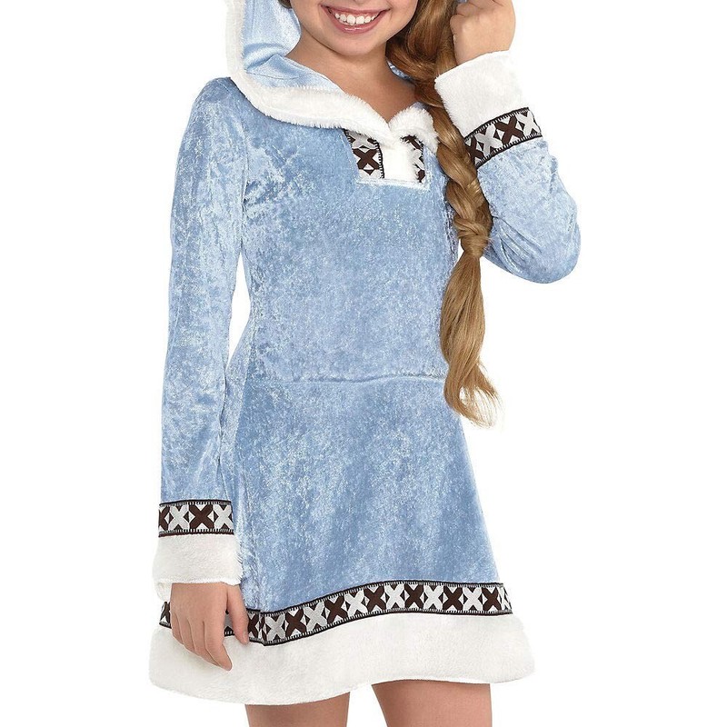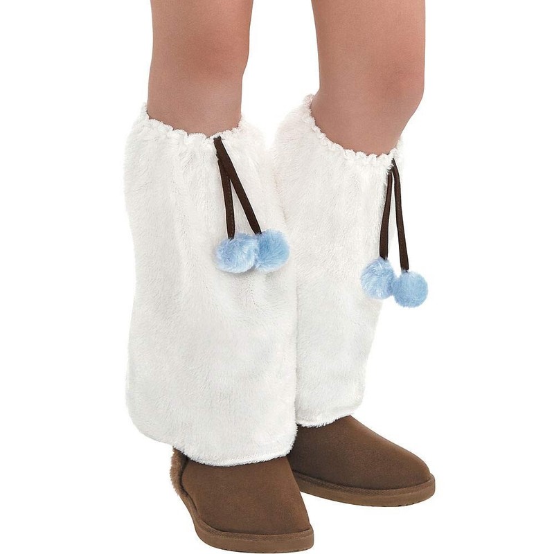 - Features a one piece soft poly-knit dress with attached soft hood and furry knee high leg warmers