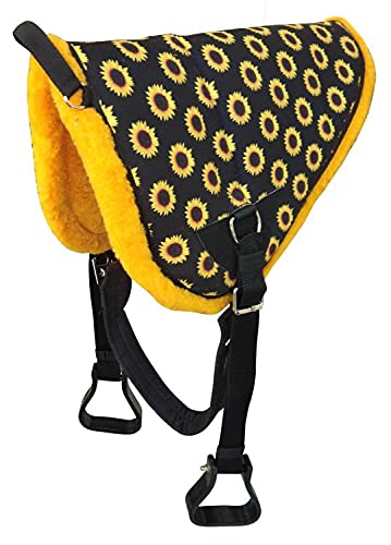 Showman Sunflower Design Bareback Saddle Pad. This saddle pad features a Kodel fleece bottom and comes equipped with girth and stirrups. For an average full size horse.
