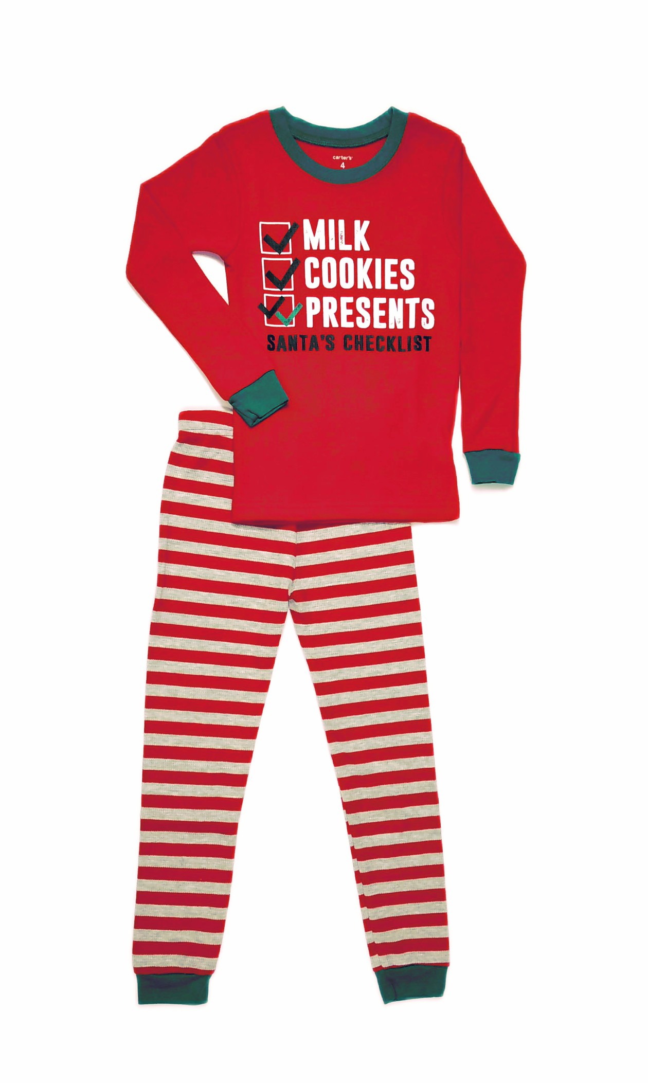 Features a fun and festive 'Santa's Checklist' theme on a soft waffle thermal pajama shirt.