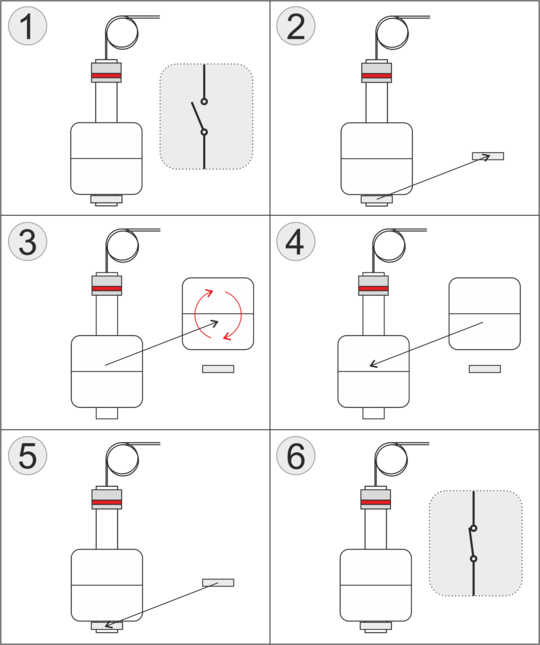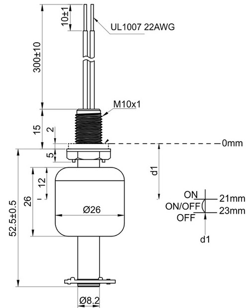 They are usually mounted on the bottom or top of the tank. Can be used to control the lower or upper fluid level. By changing the position of the float, you can change the reed switch function from open to closed.