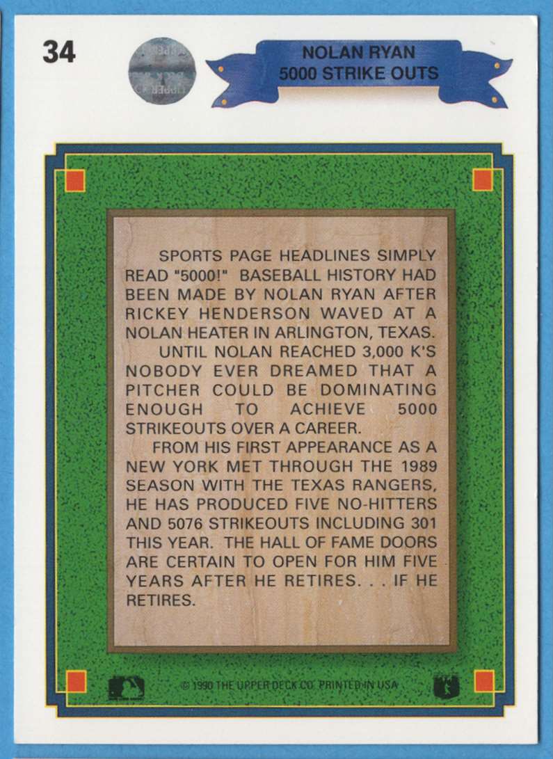| Description: | Nolan Ryan | | Category: | Baseball | | Year: | 1990 | | Product: | Upper Deck | | Team: | Texas Rangers | | Card Number: | 34 | | Dimensions: | 3½" x 2½" |