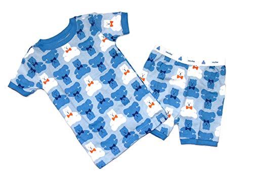 He'll be cute and cozy in this Baby Gap cotton pajama set. Features a Teddy Bear themed print in blue and white. Crew-neck style collar and rib-knit trim. Pajama shorts have an elasticized waistband for a custom fit. Of a 100% cotton, to be worn snug-fitting.