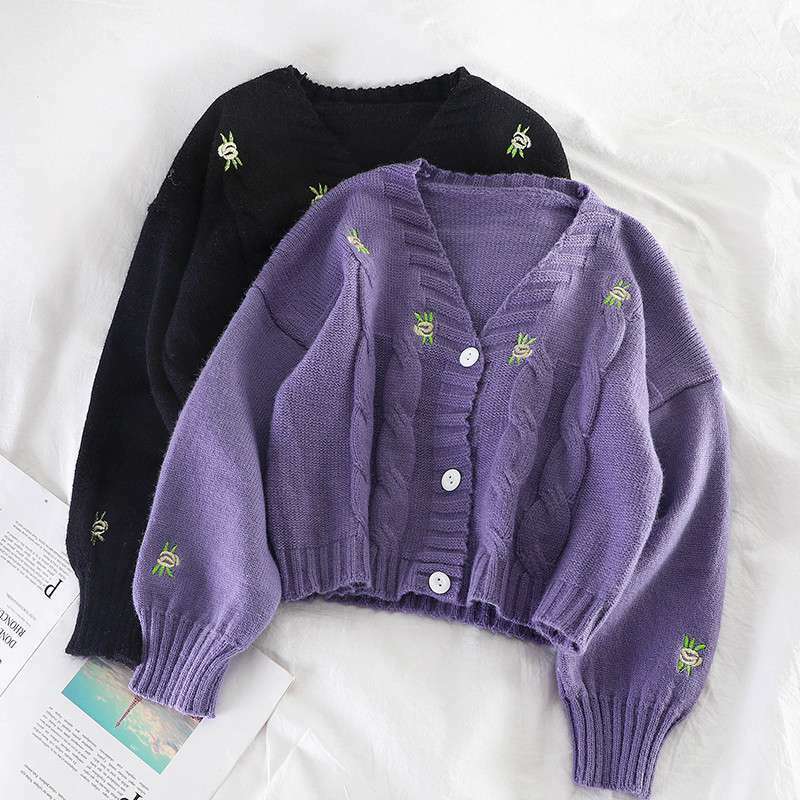 Cardigan Lantern Sleeve Fashion V-Neck Spring Autumn Sweater Loose Women Knitted