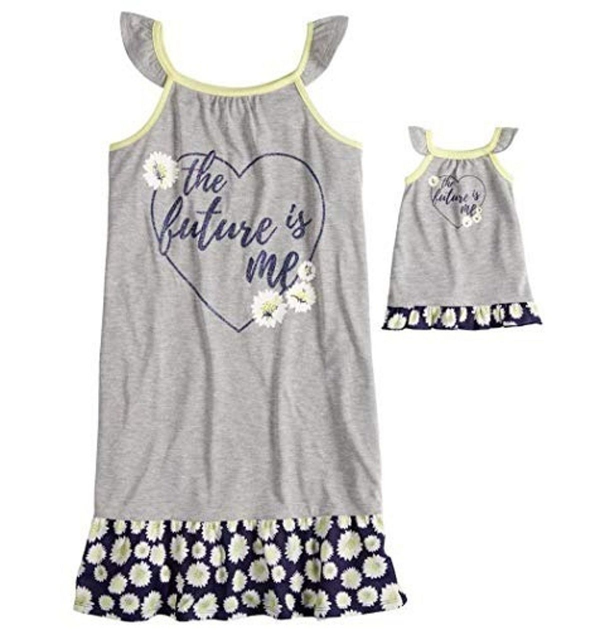 She'll love the theme of this nightgown along with the comfort of the soft polyester fabric. A floral print on the gathered hemline adds to the charm. Comes with a matching gown that fits up to an 18" doll. Of a comfortable polyester jersey fabric.