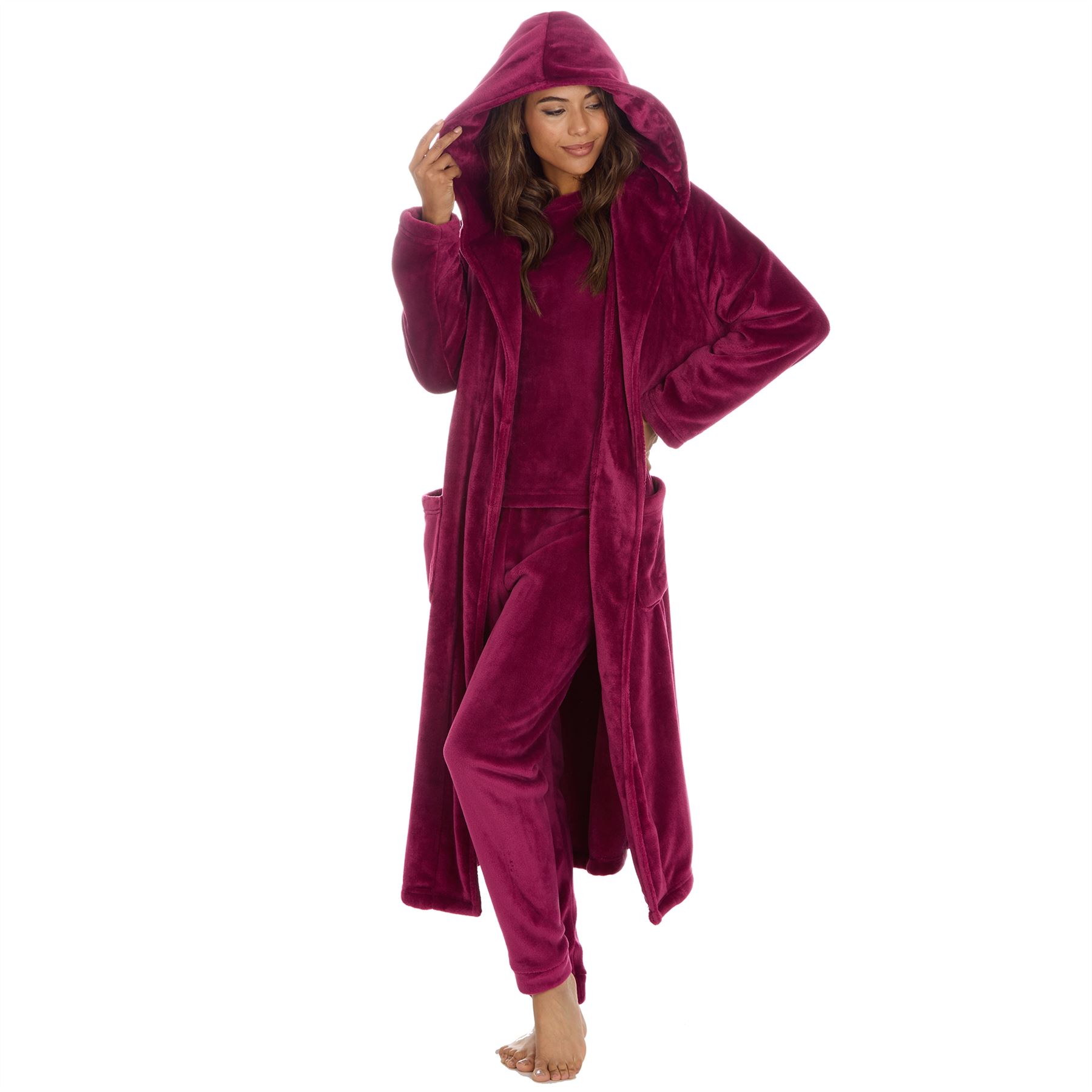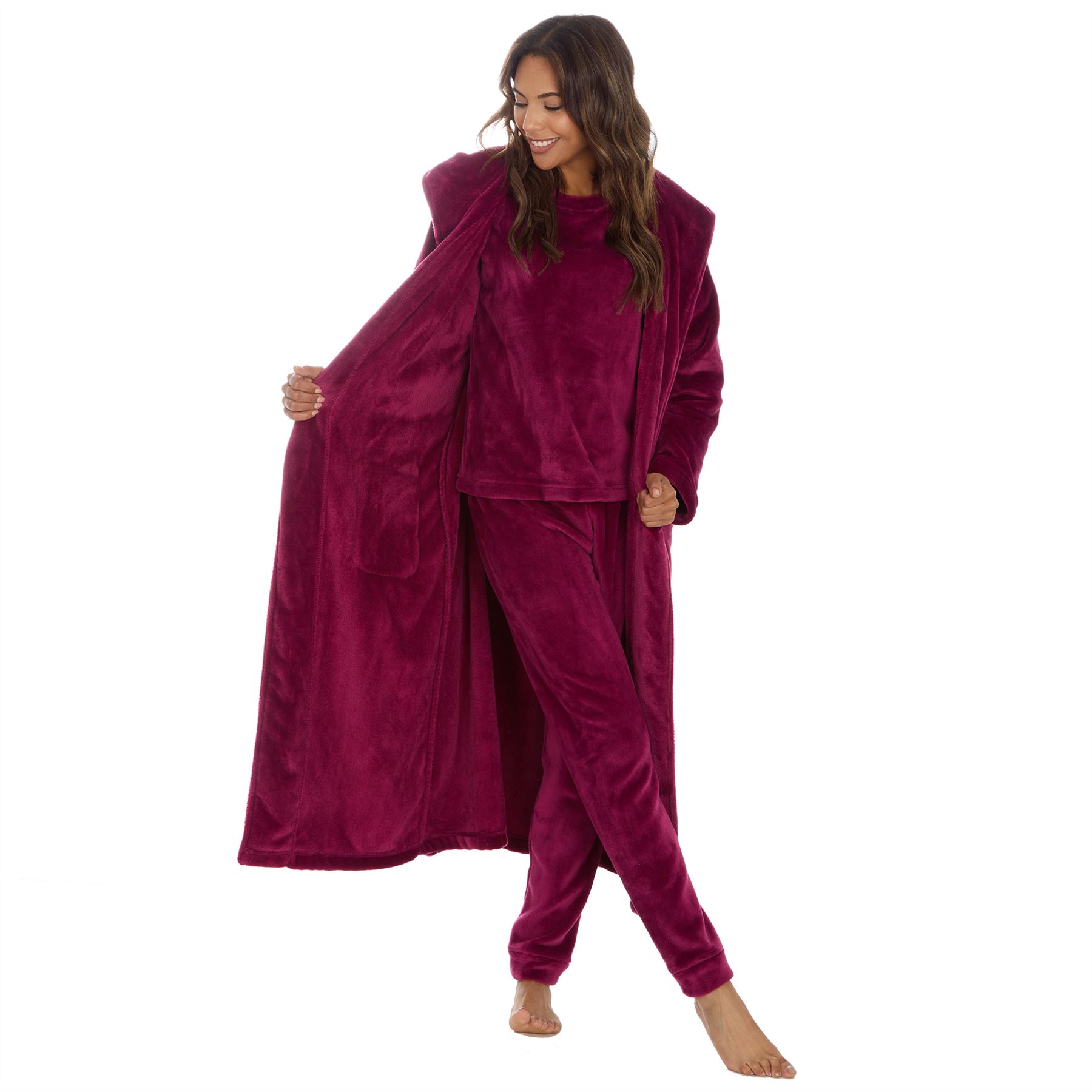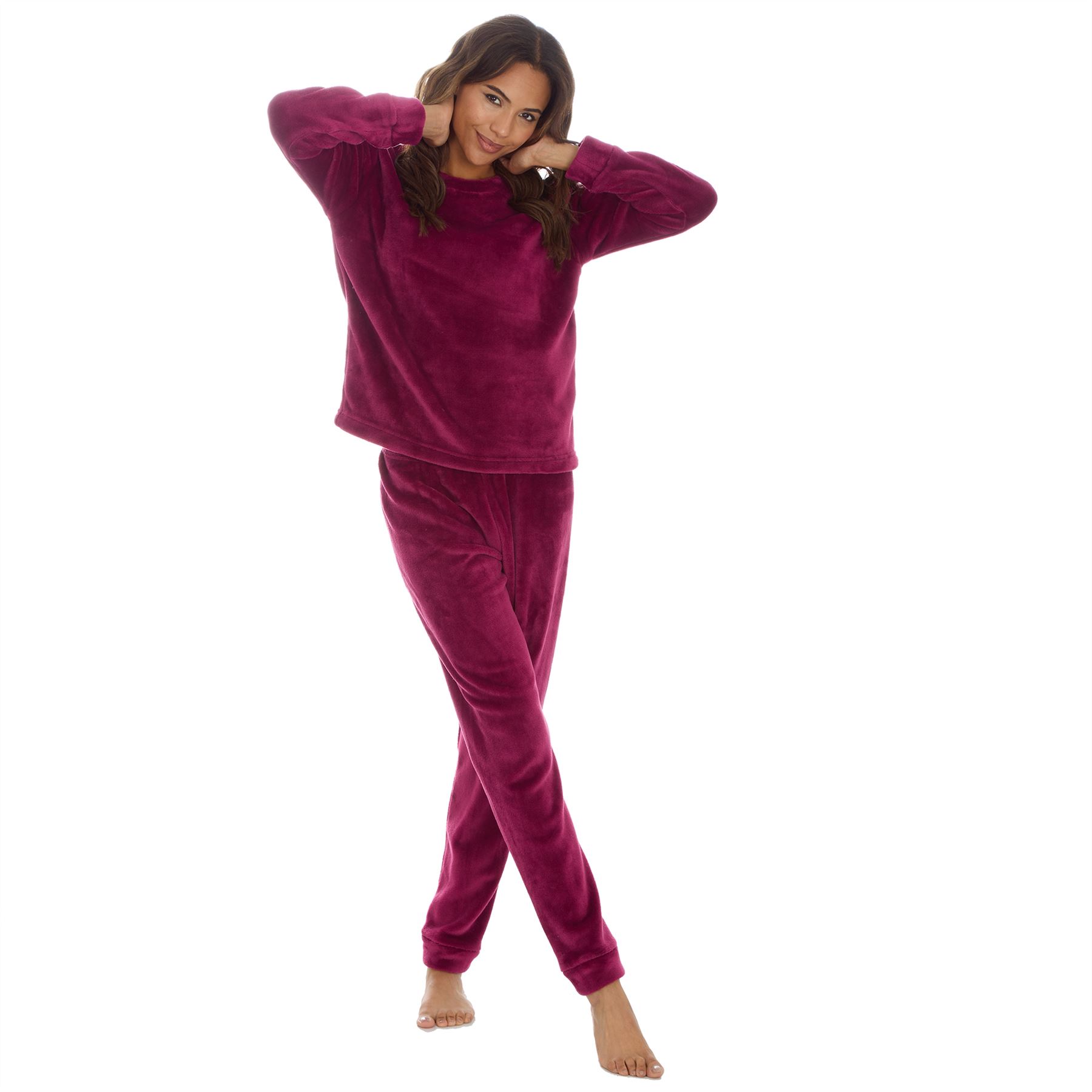 💜 Style - Supersoft polished fleece long pyjamas that are designed to keep you warm and cosy this cold season. Available in a variety of styles, with crew neck or hood and loose or cuffed legs, depending on the style you prefer. Layer with our coordinating robe to complete this cosy look.