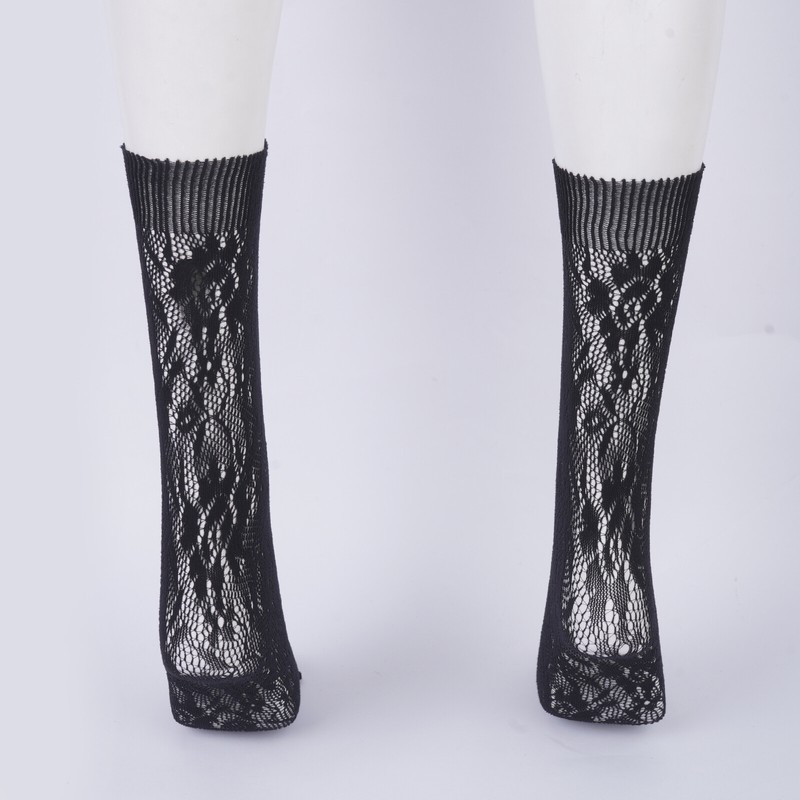 2 Pairs Women Lace Mesh See-through Cute Lolita Middle Tube Socks Ultra-thin Stretchy Breathable Calf Socks.