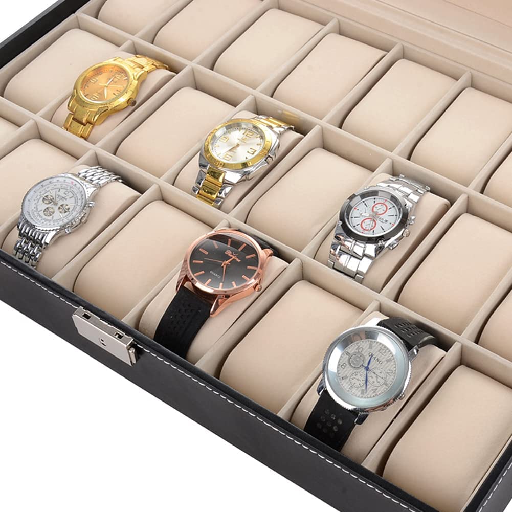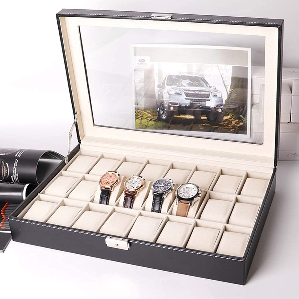 Uhrenbox Uhrenkoffer PU-Leder für 24 Uhren Uhrenkasten Uhrenschatulle Uhrentruhe