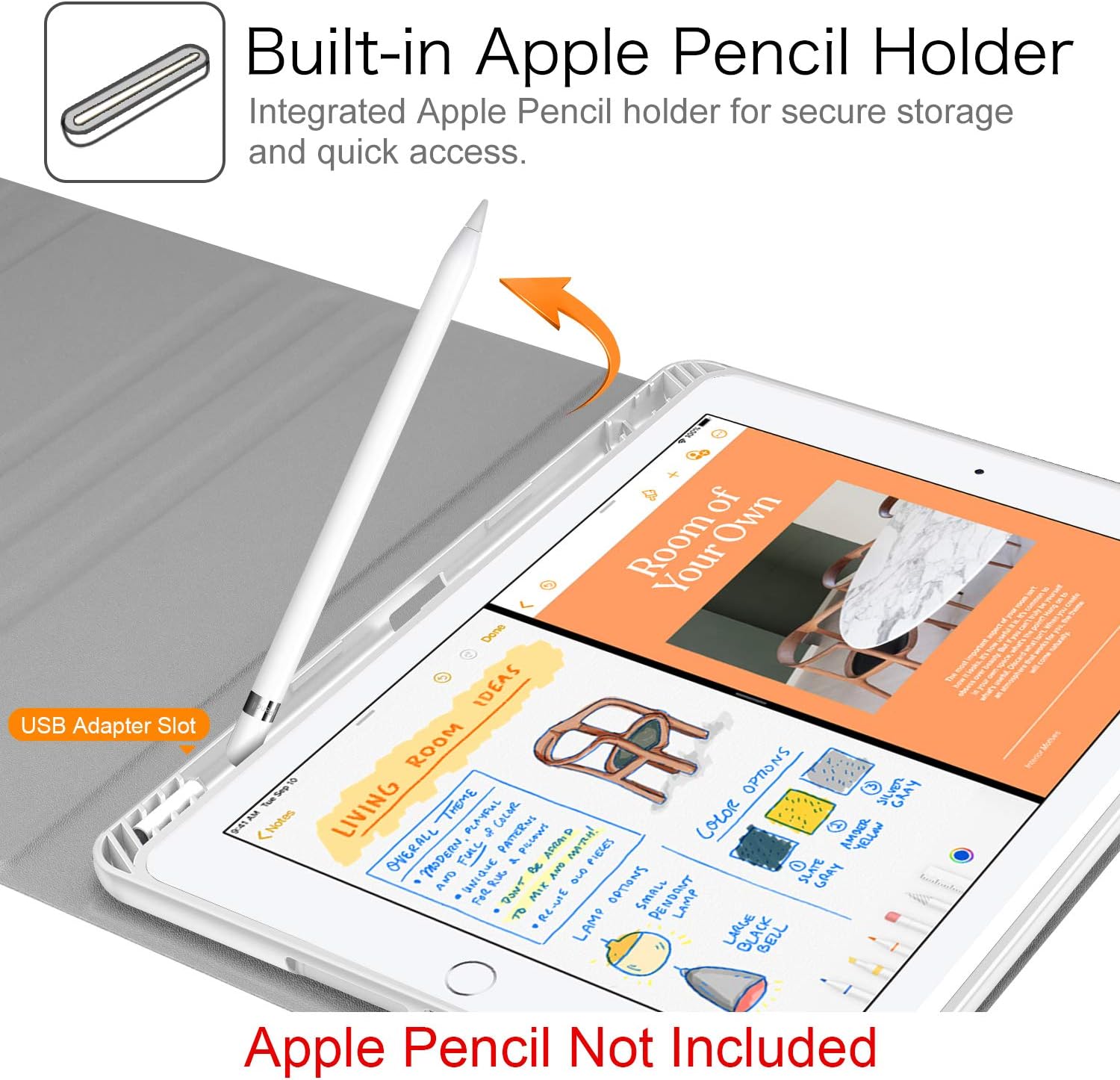 Built-in Apple Pencil holder, cap & adapter slots, grab your Apple Pencil, Pencil Cap and Adapter effortlessly whenever you want, easily to carry your Apple pencil with your device. Apple Pencil, Adapter & Cap not included! Available in a variety of bright and fun colors.