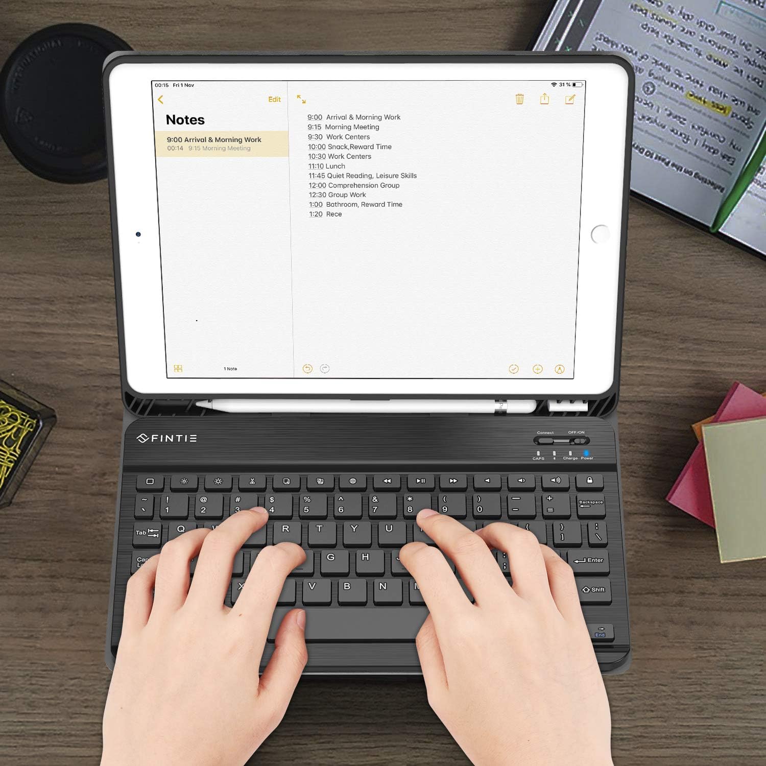 Super slim design adds maximum protection with minimal bulk (0.38 in). Adjustable stand securely holds your iPad in landscape mode.Magnetically detachable super slim 7mm and light weight bluetooth keyboard with 10M range.