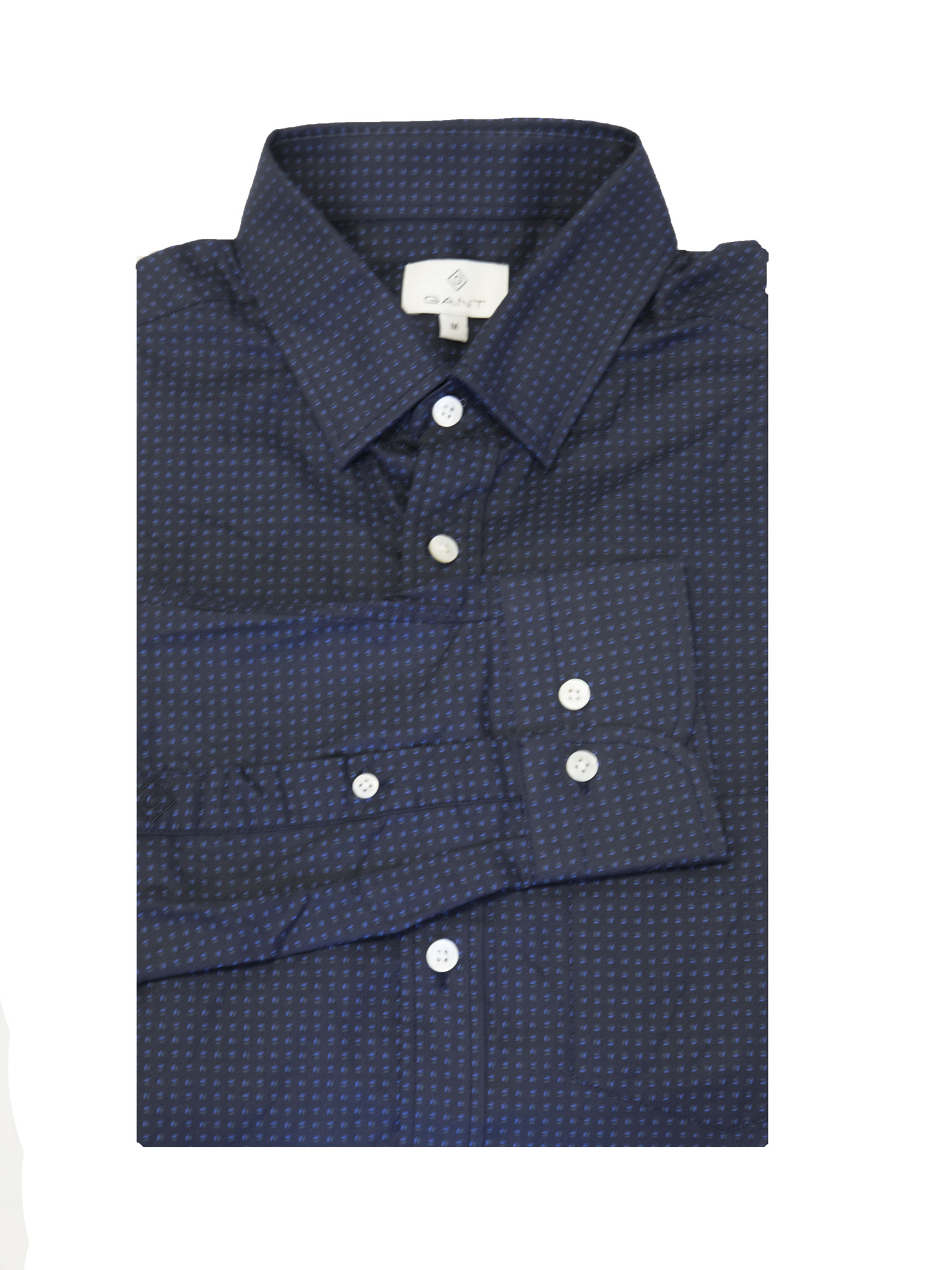 Model: Linear Print Fitted Concealed Button Down Collar Shirt