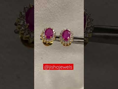 Pave 1.44 Cts Round Brilliant Cut Diamonds Ruby Stud Earrings In 750 18K Gold. A Gift That Will Leave Her Awestruck !!