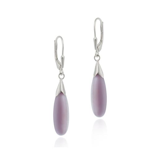 | Pretty and stylish! These beautiful drop earrings are crafted of Genuine Sterling Silver (.925) . They have a pear shaped Lavender Cats Eye dangling from secure Lever backs. The arrangement inside the Cats Eye stone it takes on the look of a cats eye, not to mention the captivating blend of colors gives you an intriguing optical illusion. E392 |