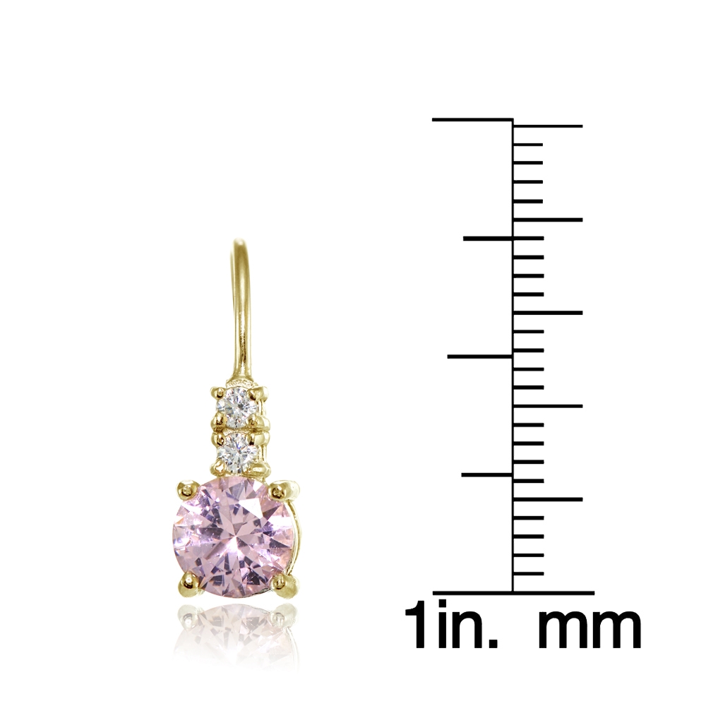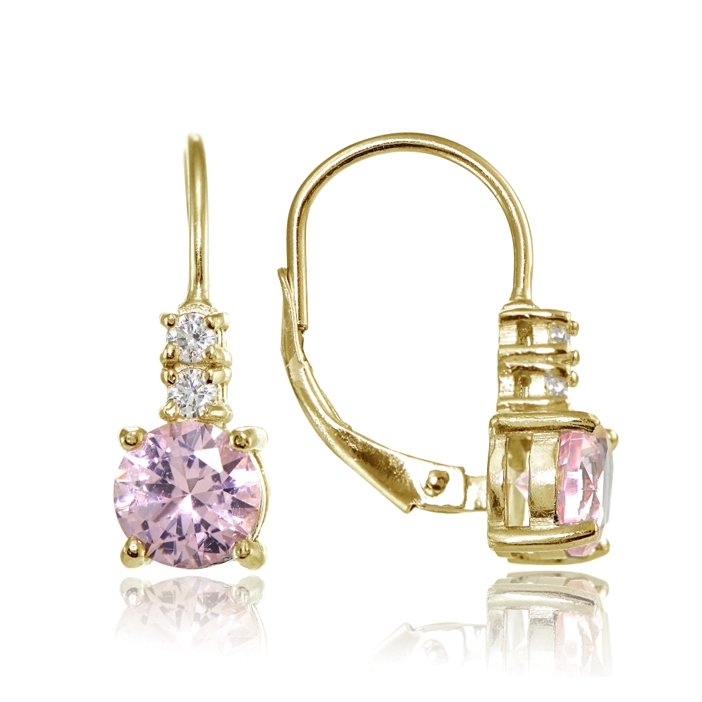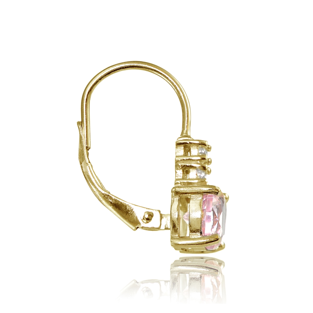 | These gorgeous leverback earrings for women feature 6mm round simulated pink tourmaline stones with cubic zirconia accents, for an added touch. The earrings are crafted of yellow gold flashed sterling silver and are nickel free. EG15999NPT |