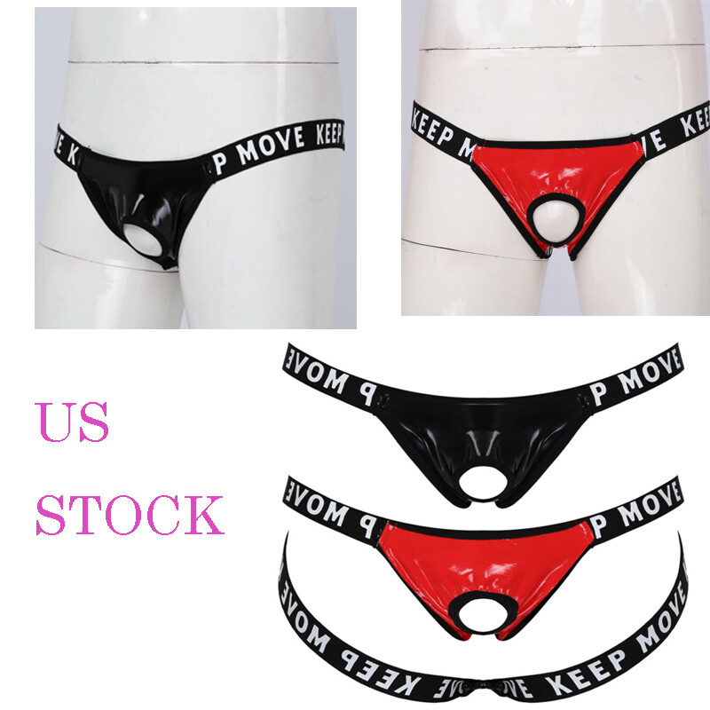 Featuring with wet look appearance bulge pouch, open butt, low-rise with elastic waistband.