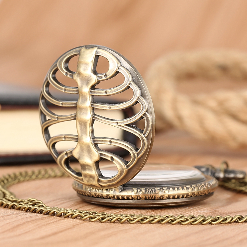 Bronze Half Hunter Vintage Pocket Watch Luminous Dial Hand-Wind Unisex w/ Chain