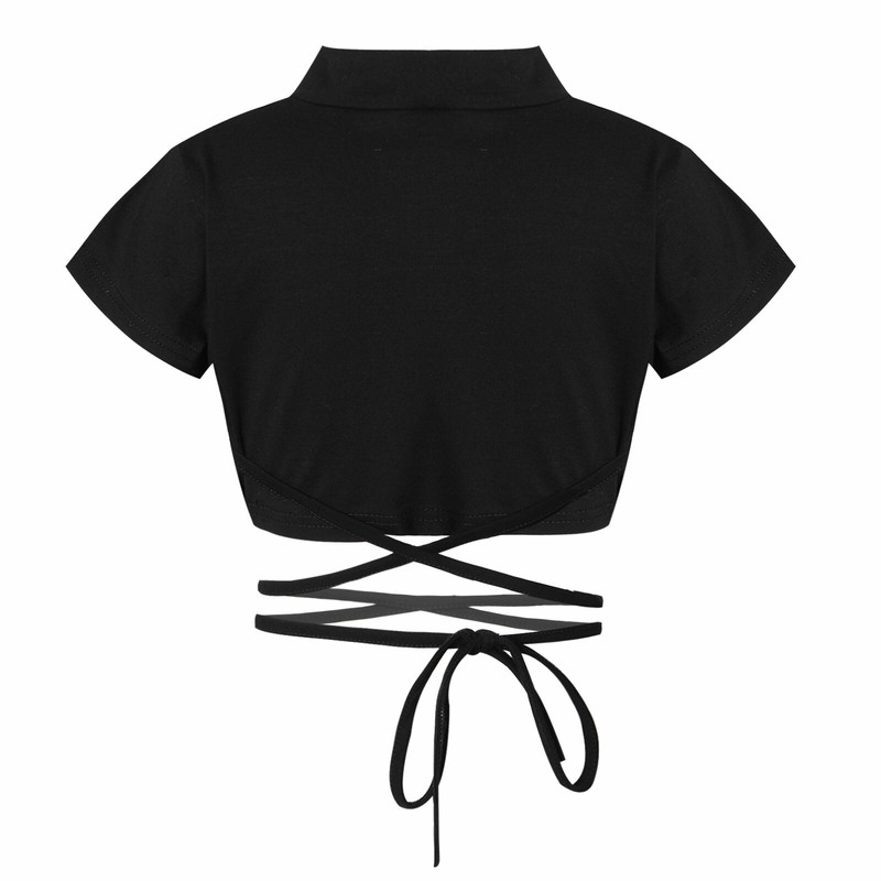 Kids Unisex Round Neck Short Sleeve Sash Tie Cross Waist Jazz Dance Sport Crop Top.