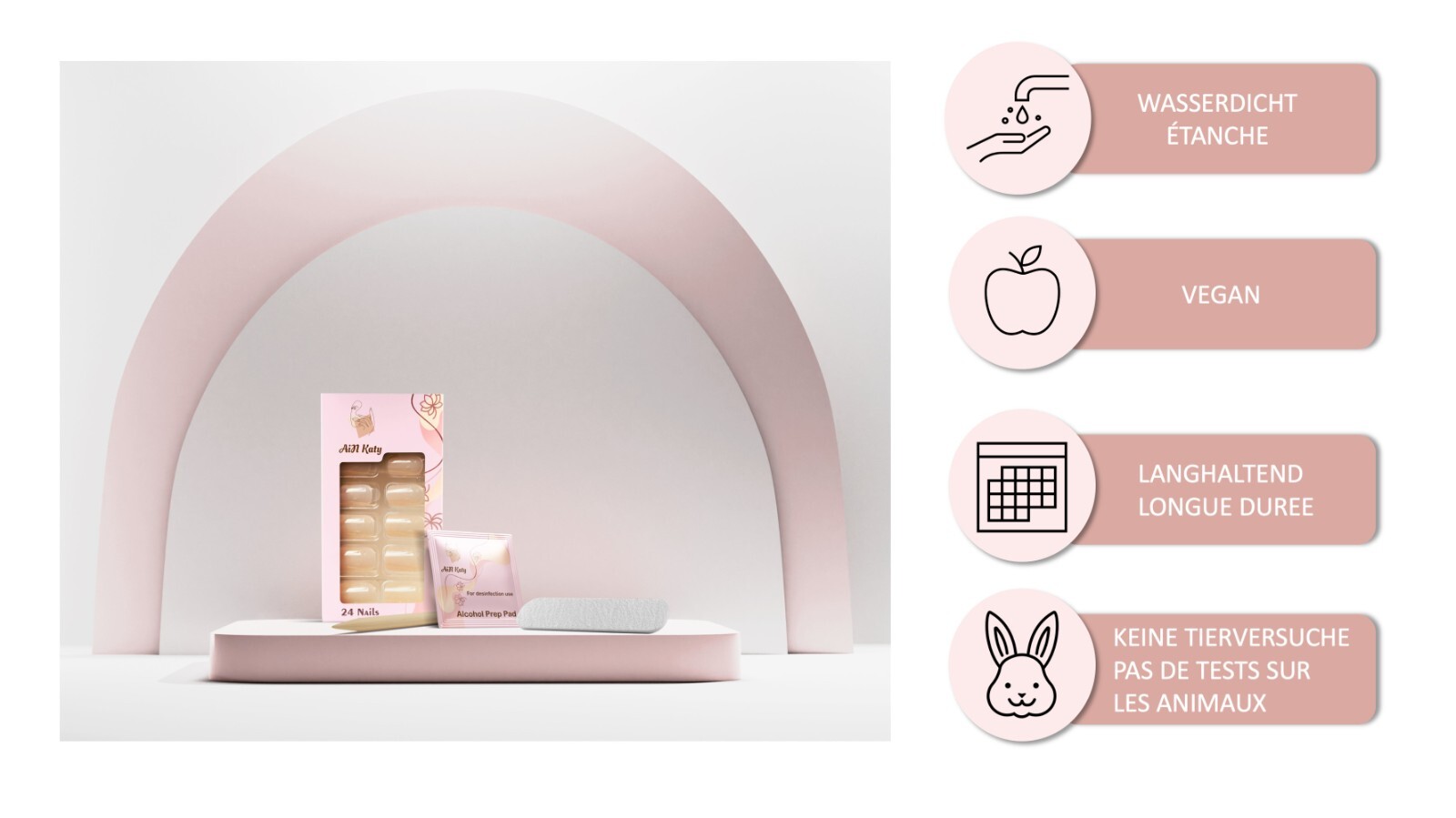 - Reinigung: Nutze die im Set beigelegte Zellette, um deine natürlichen Nägel zu säubern. Somit sitzen Deine AiN Katy Tipps langfristig und fest.