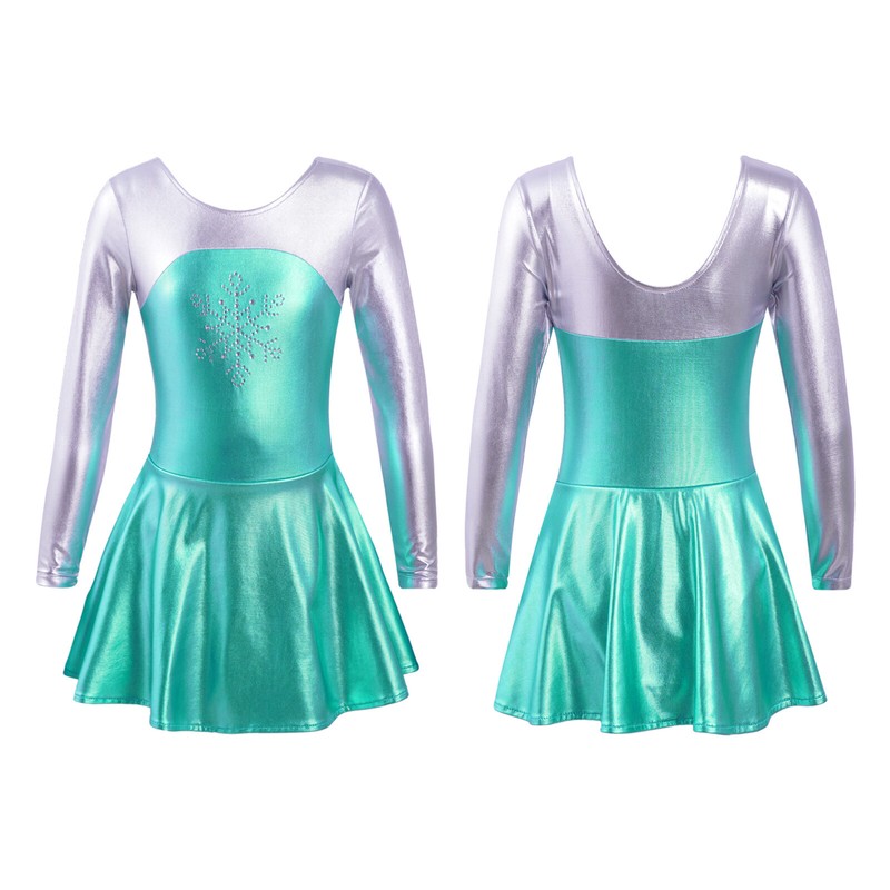 Dance leotard dress is made of polyester and netting material, hand wash.