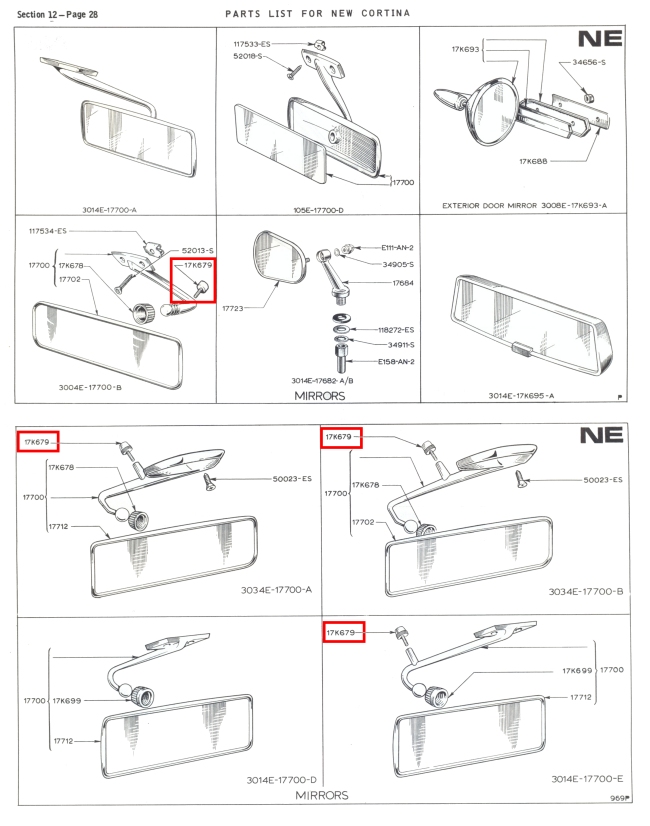 As illustrated in the Ford parts catalogue (items highlighted in Red)