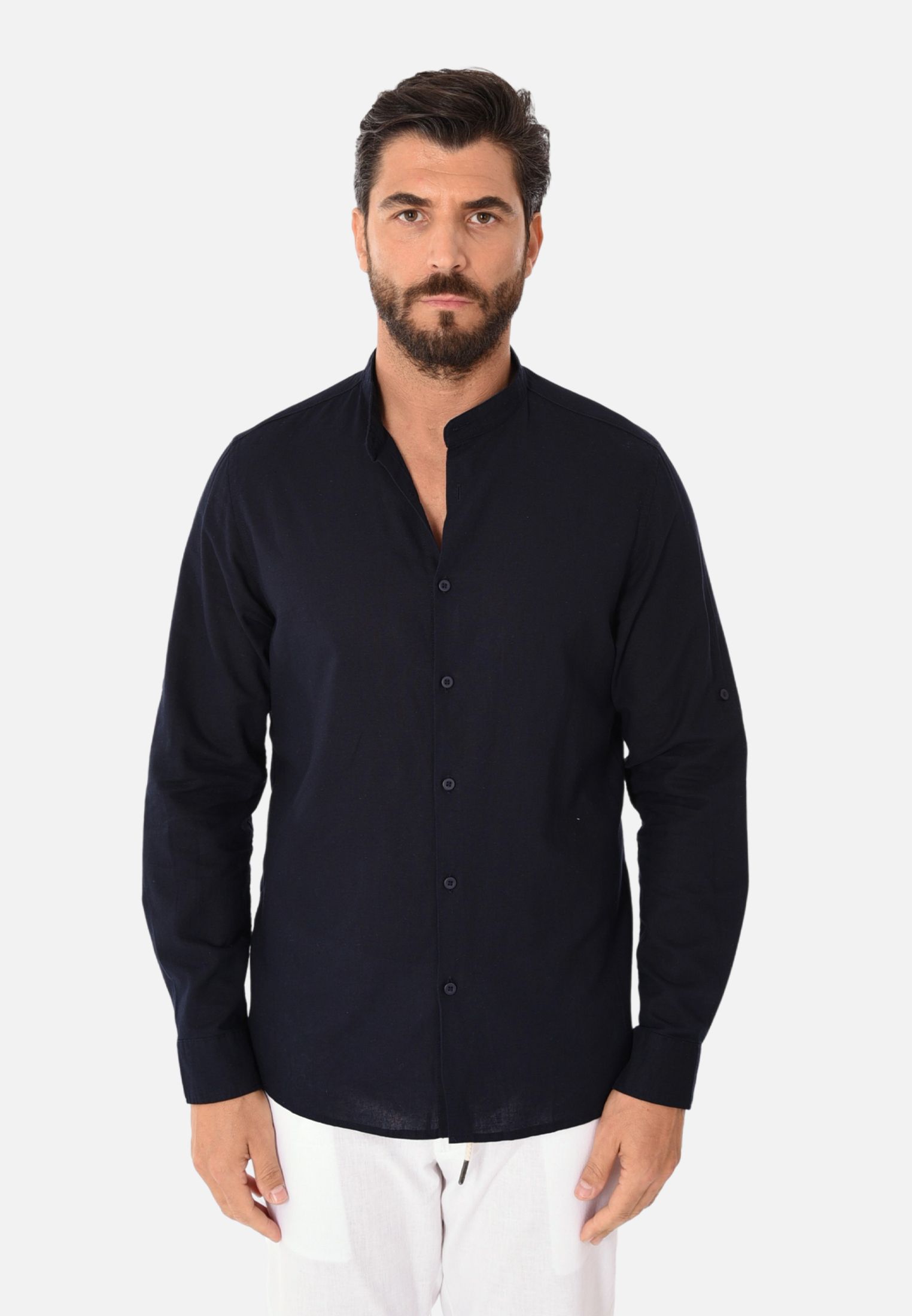 • Camicia collo coreana uomo in lino