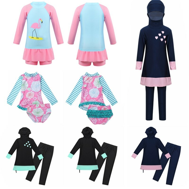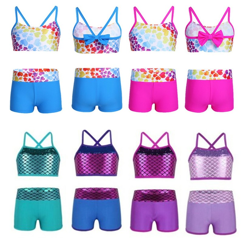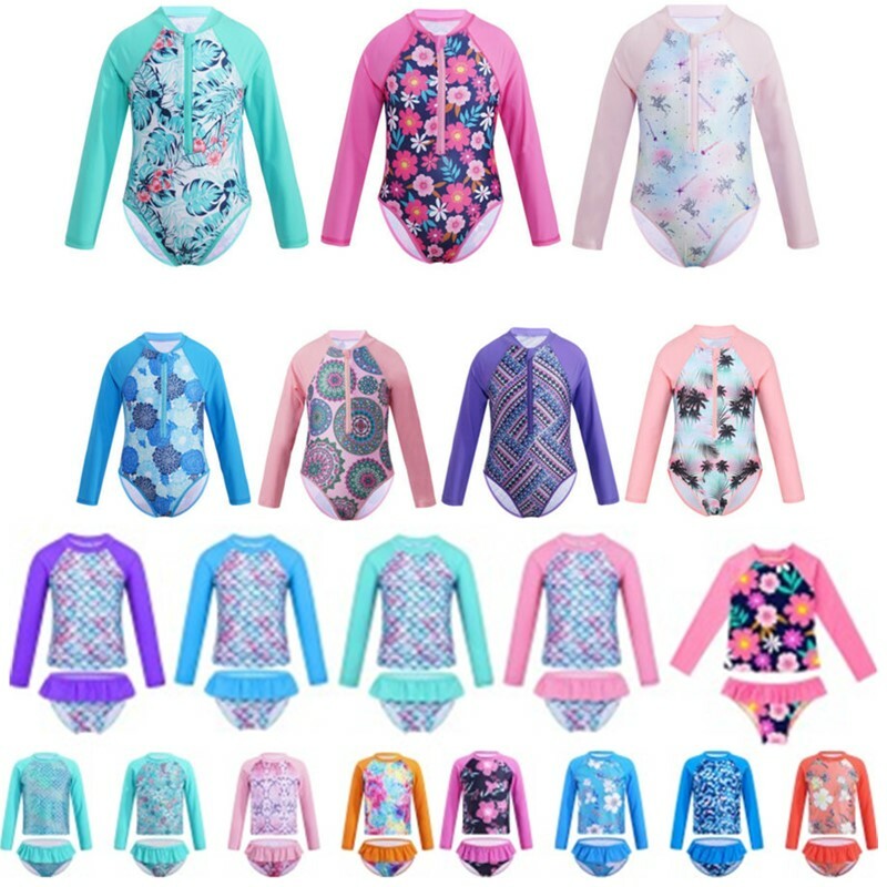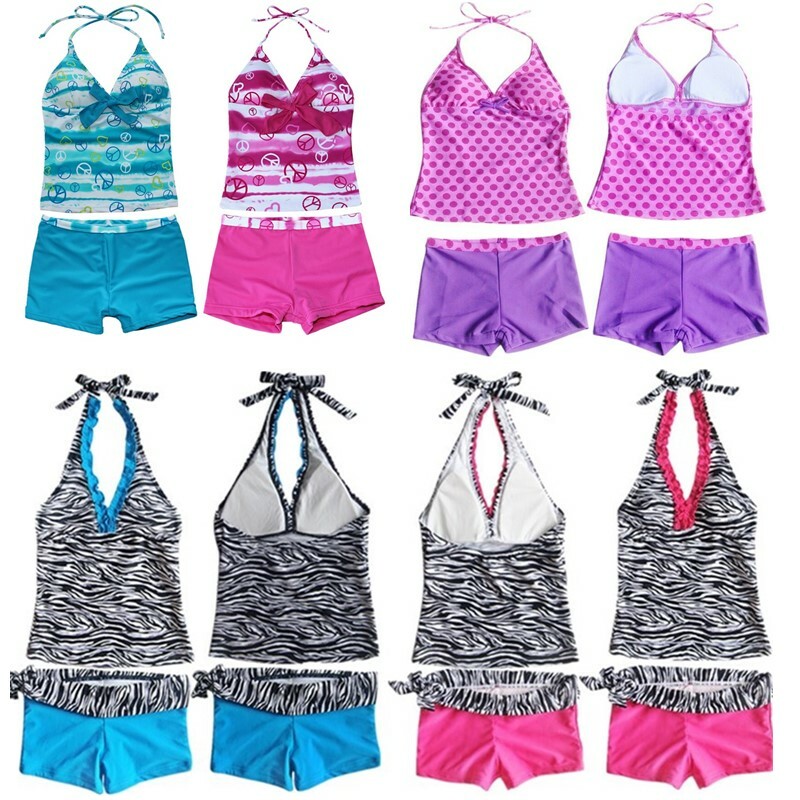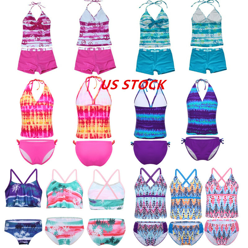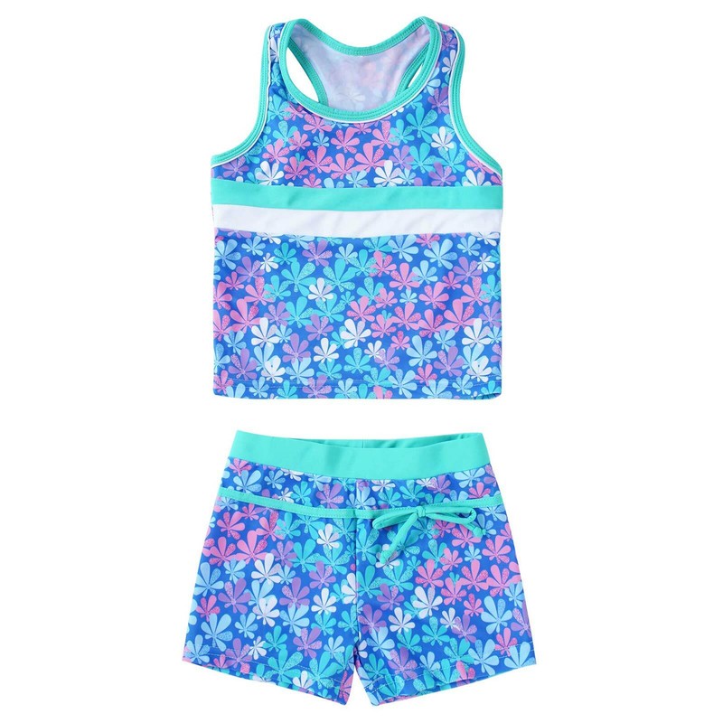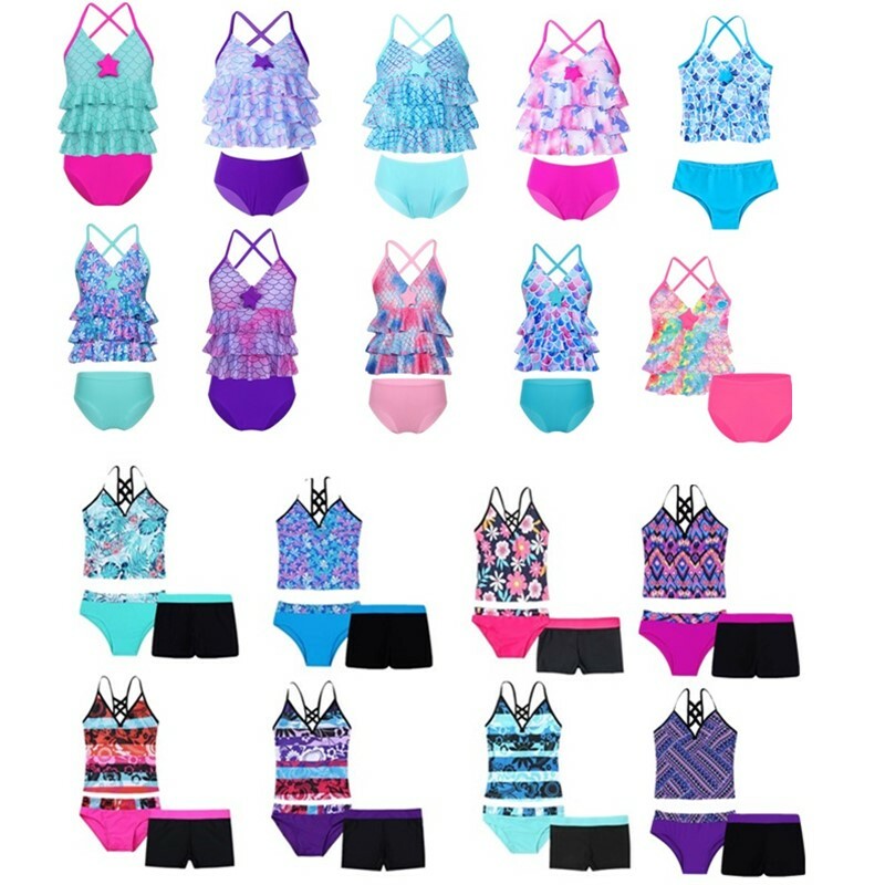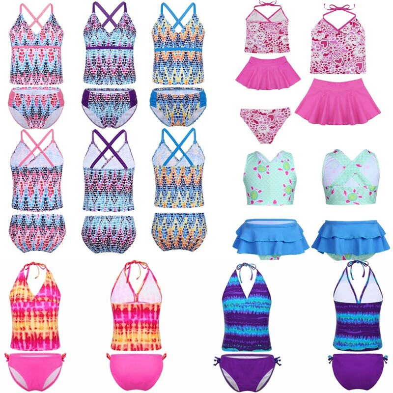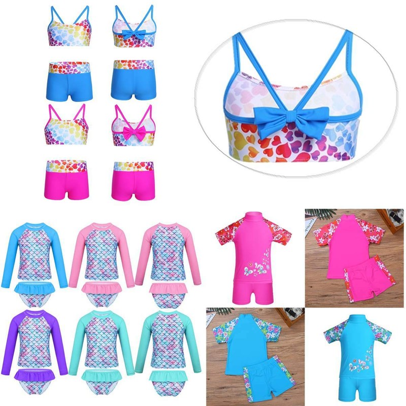 Matching bottoms is decorated with a bow at side. Comfortable and breathable fabric, quick dry. Stylish swimwear for your girl.