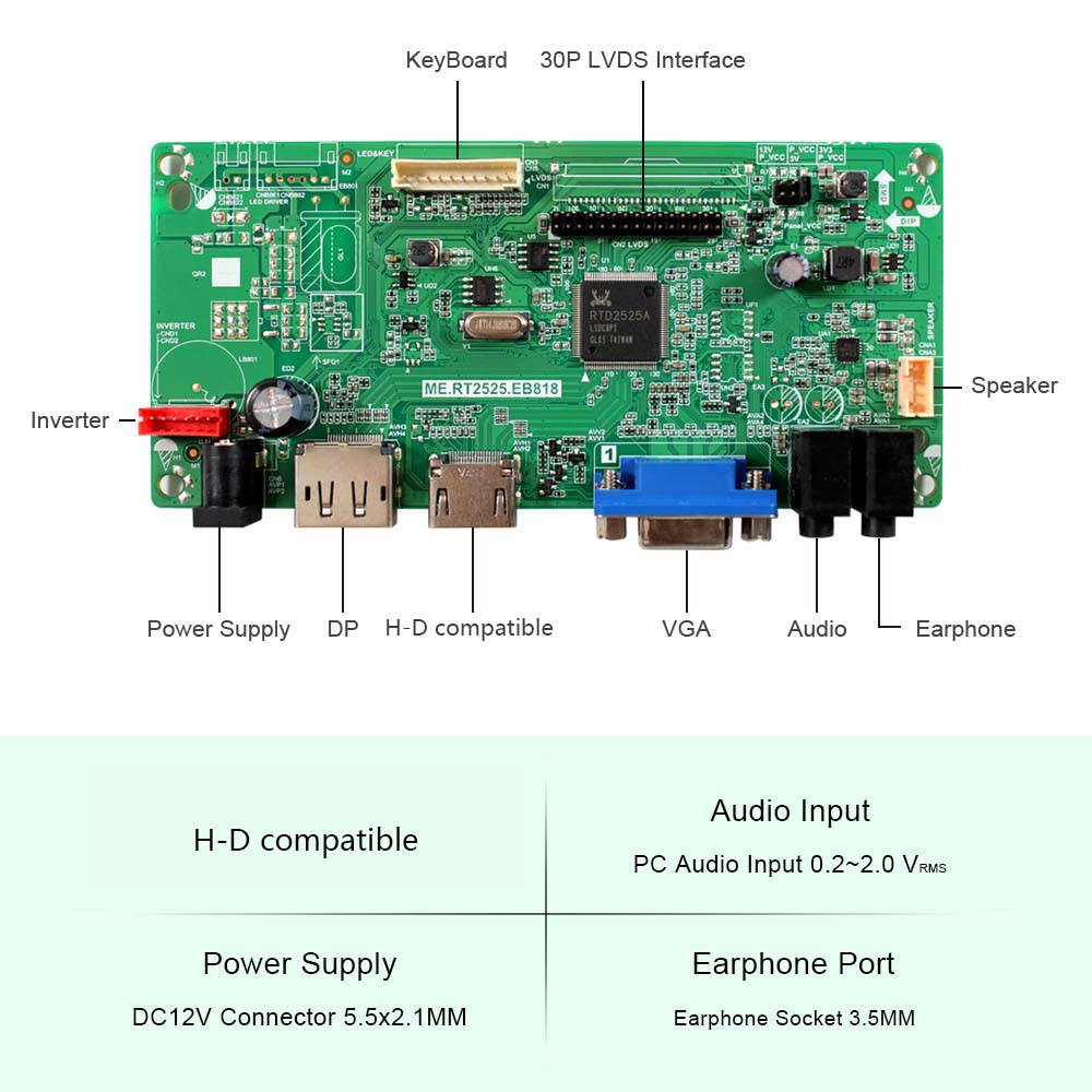 1× HD DP VGA LCD Controller Board RT2525.EB818