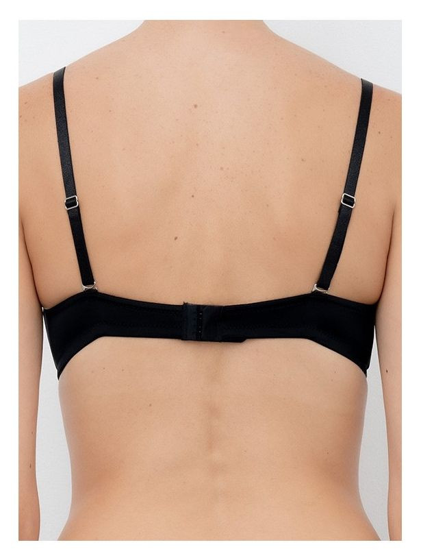 Fascia in microfibra con imbottiture graduate preformate, spalline sfilabili e profili siliconati antiscivolo sui dorsali.
