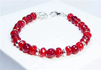 Cynthia Lynn "SCARLET " Sterling Silver Ruby Gemstone Beaded July Birthstone Bracelet 7-8 inches
